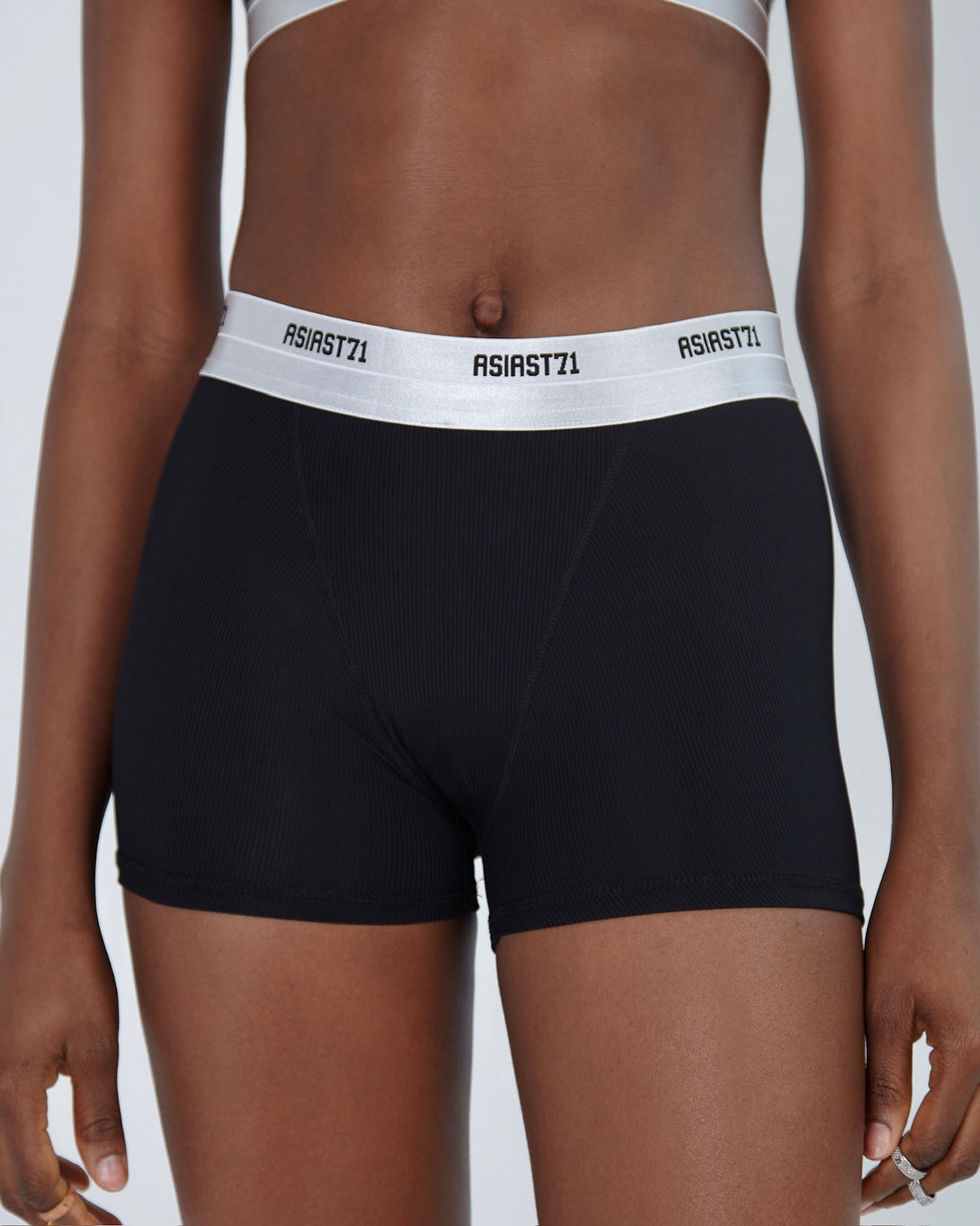 هذه السراويل القصيرة المضلعة ذات الشعار باللون الأبيض مصنوعة من مادة مرنة، مما يوفر ملاءمة مثالية. يضيف الشريط المطاطي الواسع ذو العلامة التجارية لمسة أنيقة، مما يجعله مناسبًا للملابس الداخلية ولإظهار الموضة. لا غنى عنه لأي خزانة ملابس.