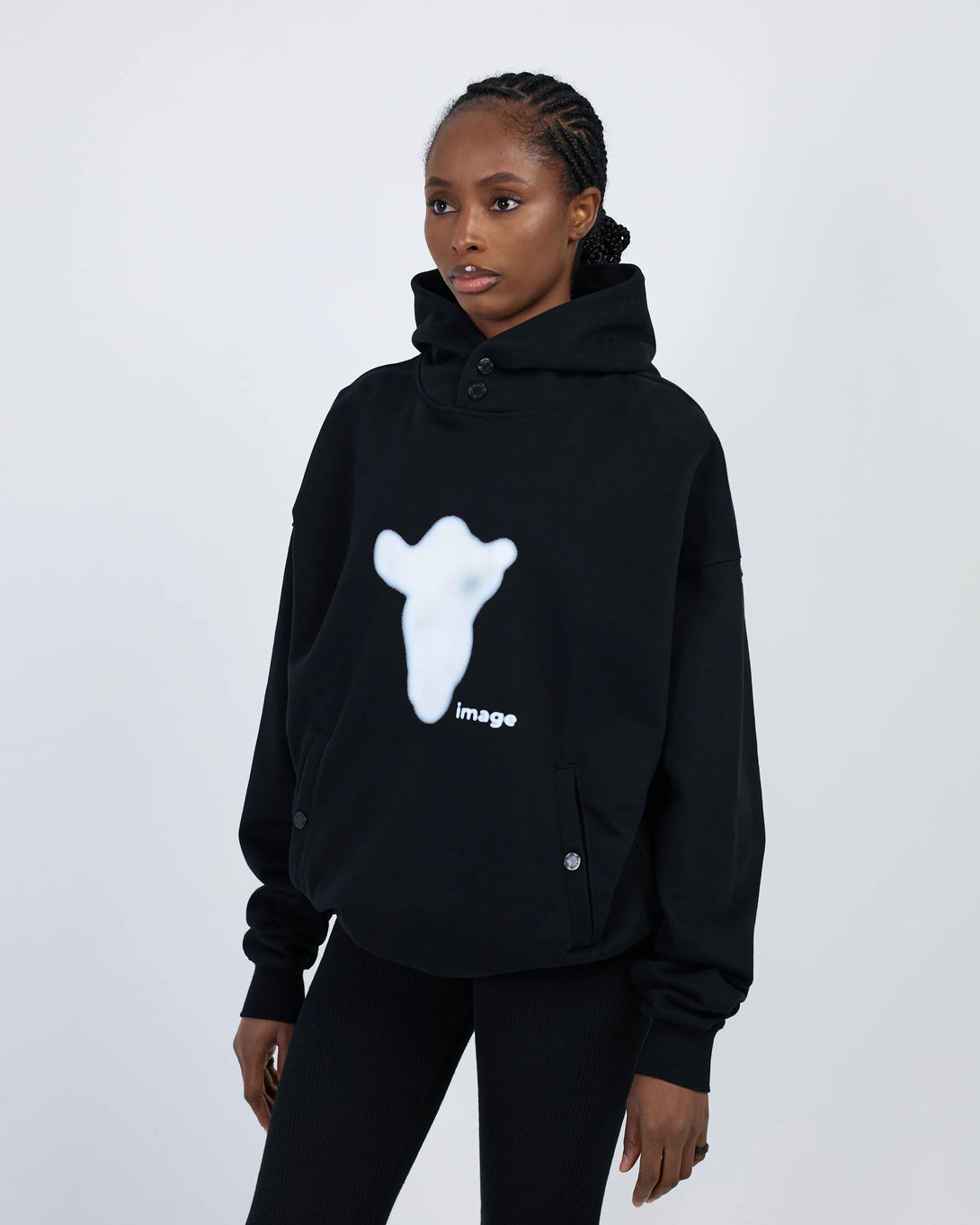 Stay warm and stylish in our HOODIE IMAGE BLACK. Made with thick cotton, this hoodie features a trendy print, adjustable hood, snug cuffs and relaxed fit for ultimate comfort. Perfect to pair with leggings, jeans, or sweatpants.