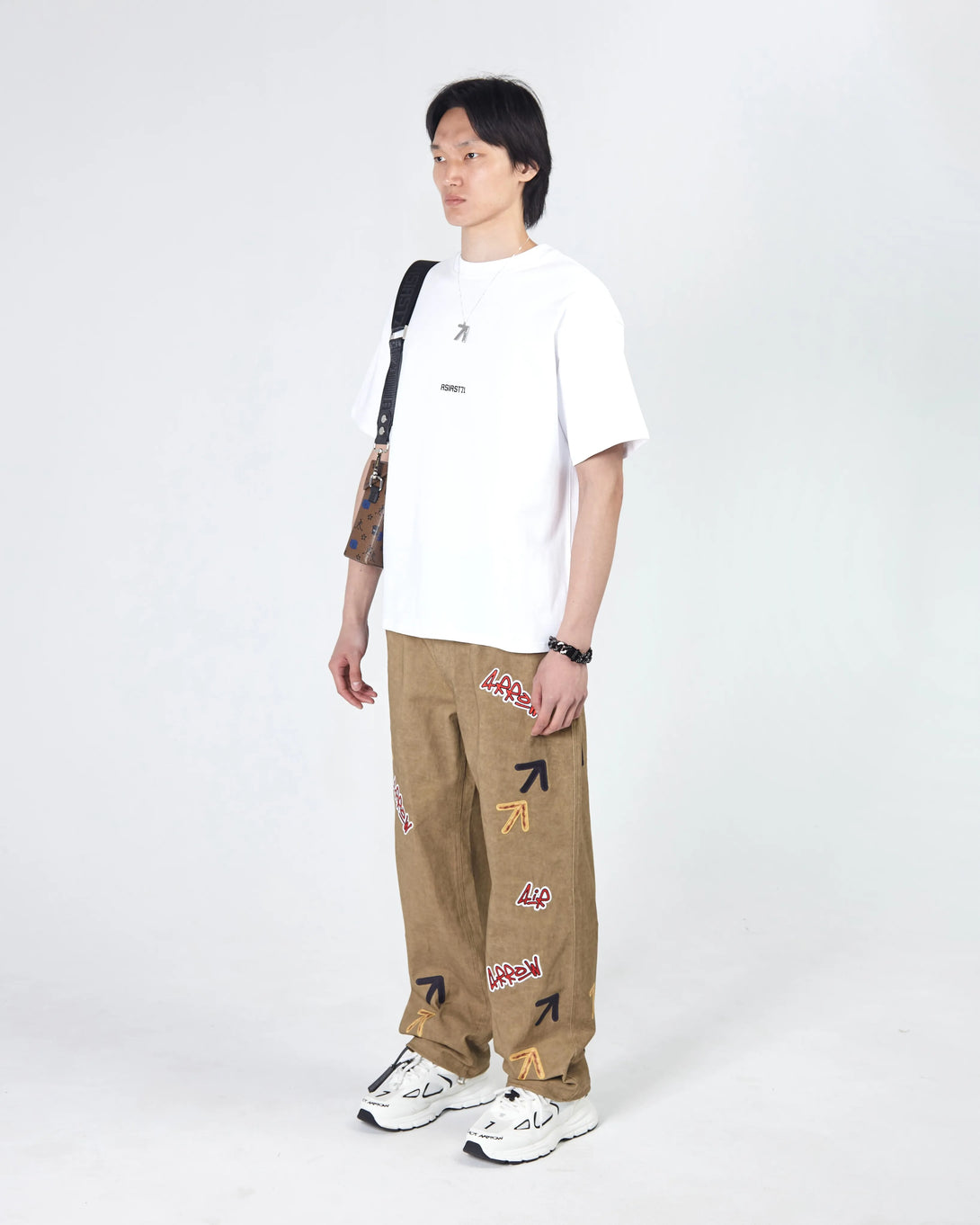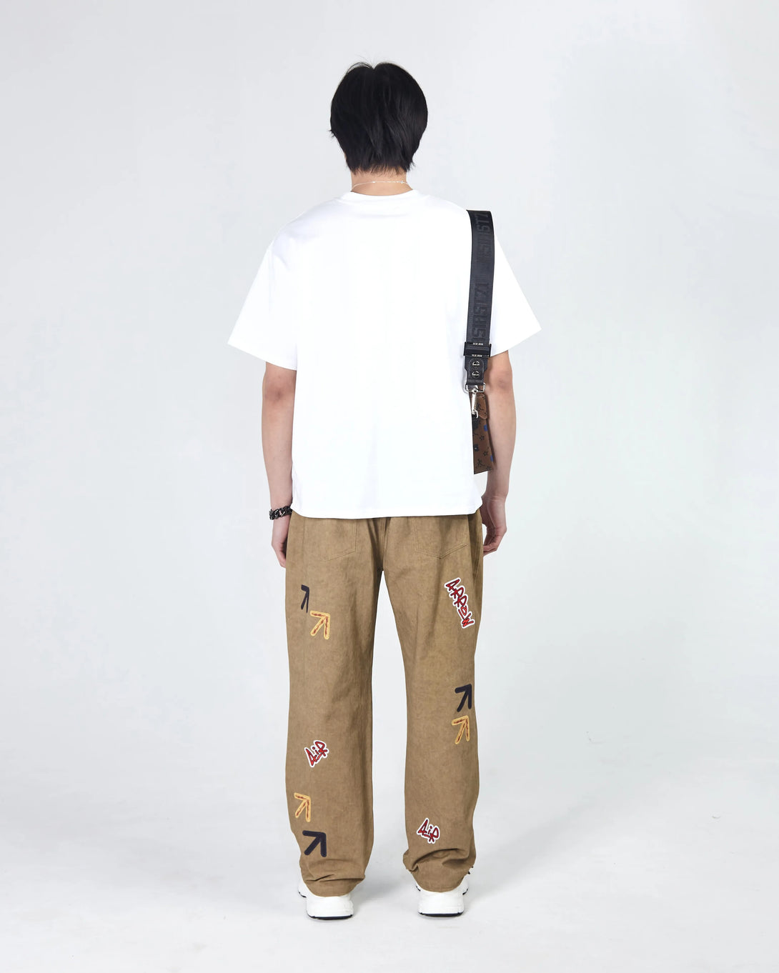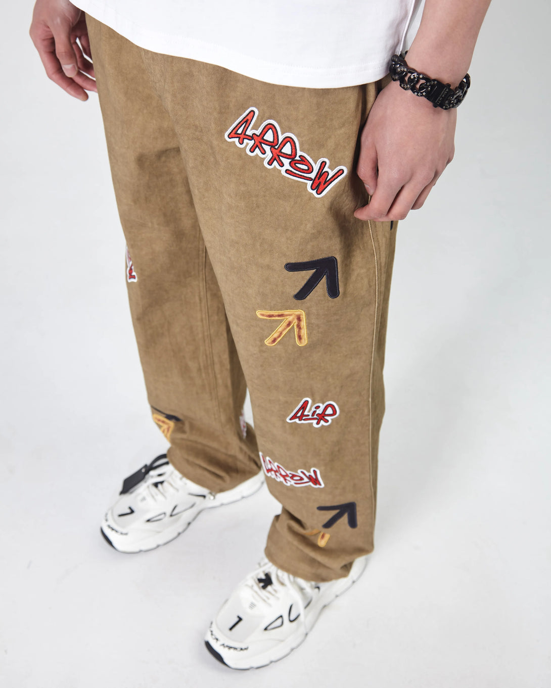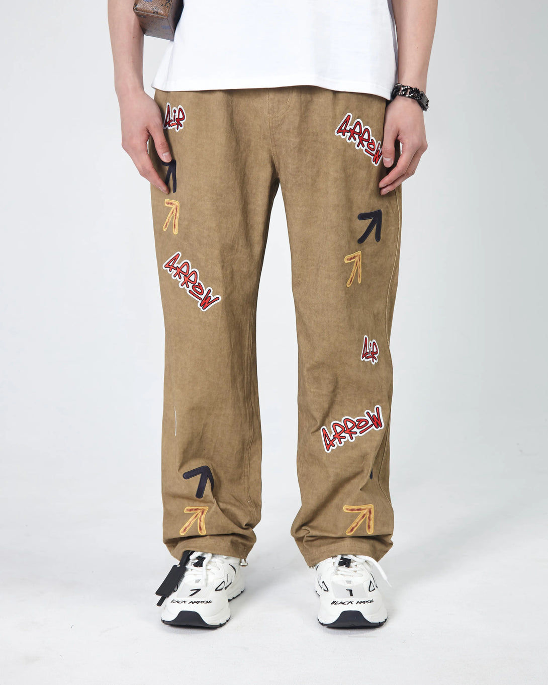 Expertly designed for comfort and style, these loose straight cut Arrow jeans feature a boiled effect and a comfortable elastic waistband. The drawstring with a lock on the ankles allows for a customizable fit and enhanced freedom of movement. Adorned with multi-color embroidered logos and branded steel fittings.