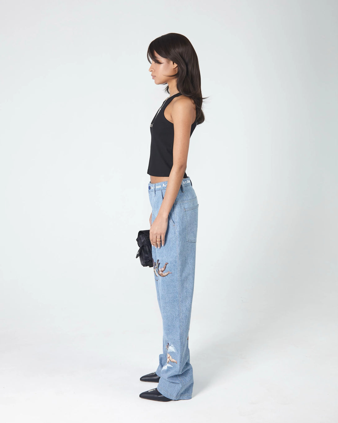 Expertly crafted with dense denim, Ezekiel's Vision jeans from the Art Union collection boast a straight, loose cut and trendy low fit. The direct laser printing of the print adds a unique touch to these classic blue denim jeans. Elevate your wardrobe and make a statement with these versatile and stylish jeans.