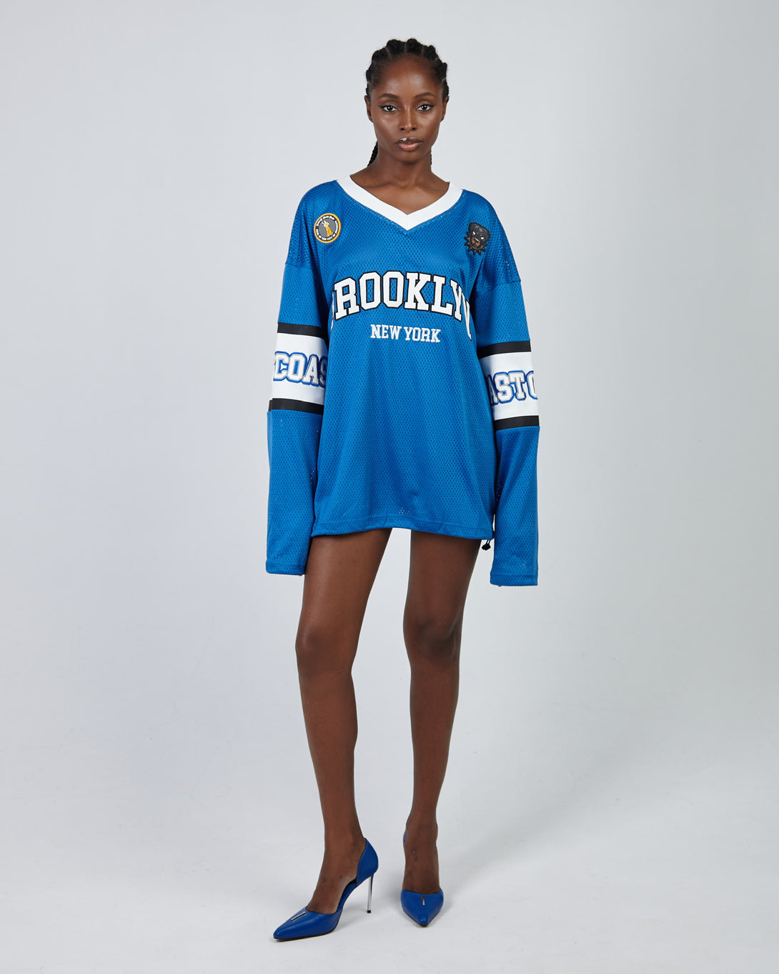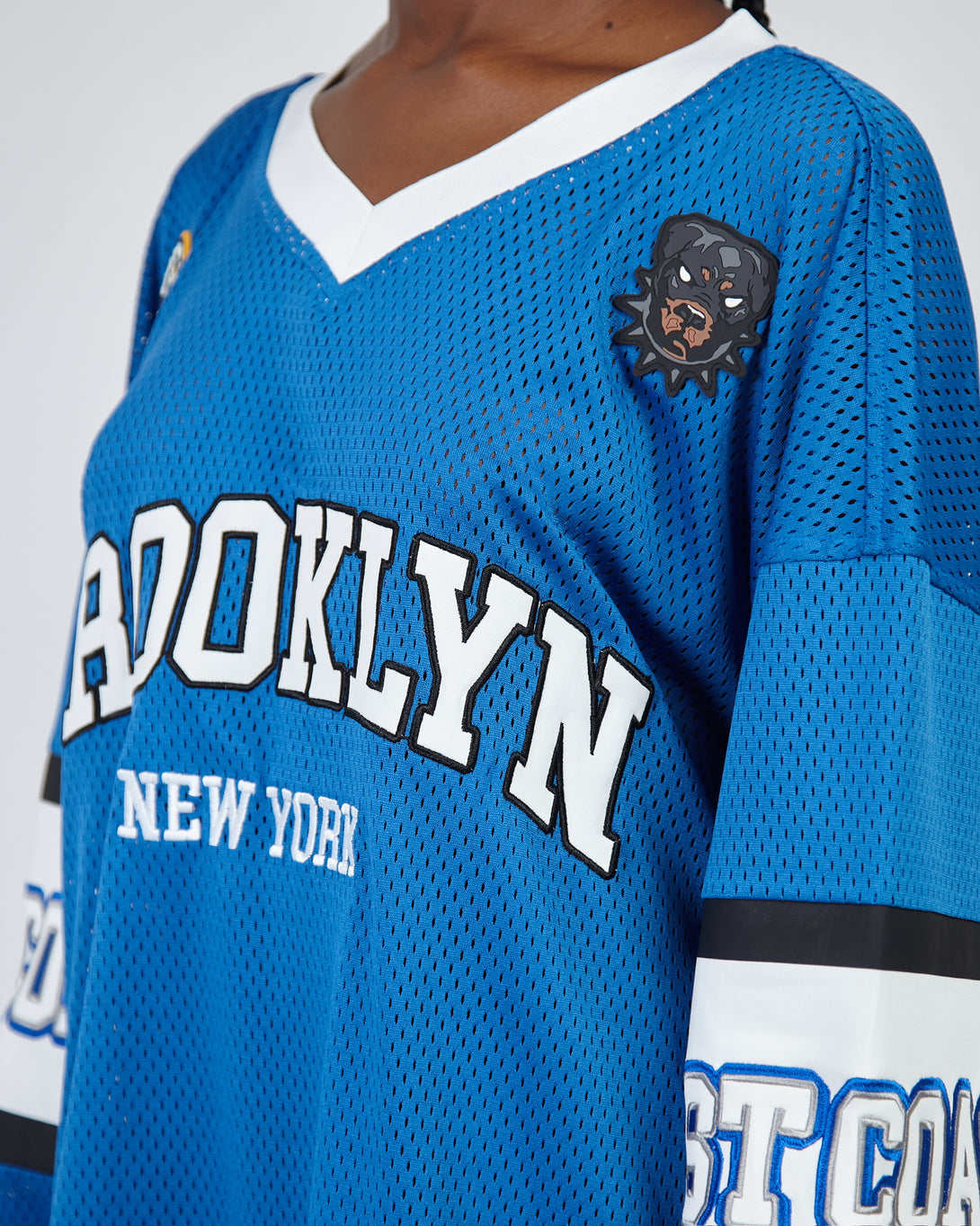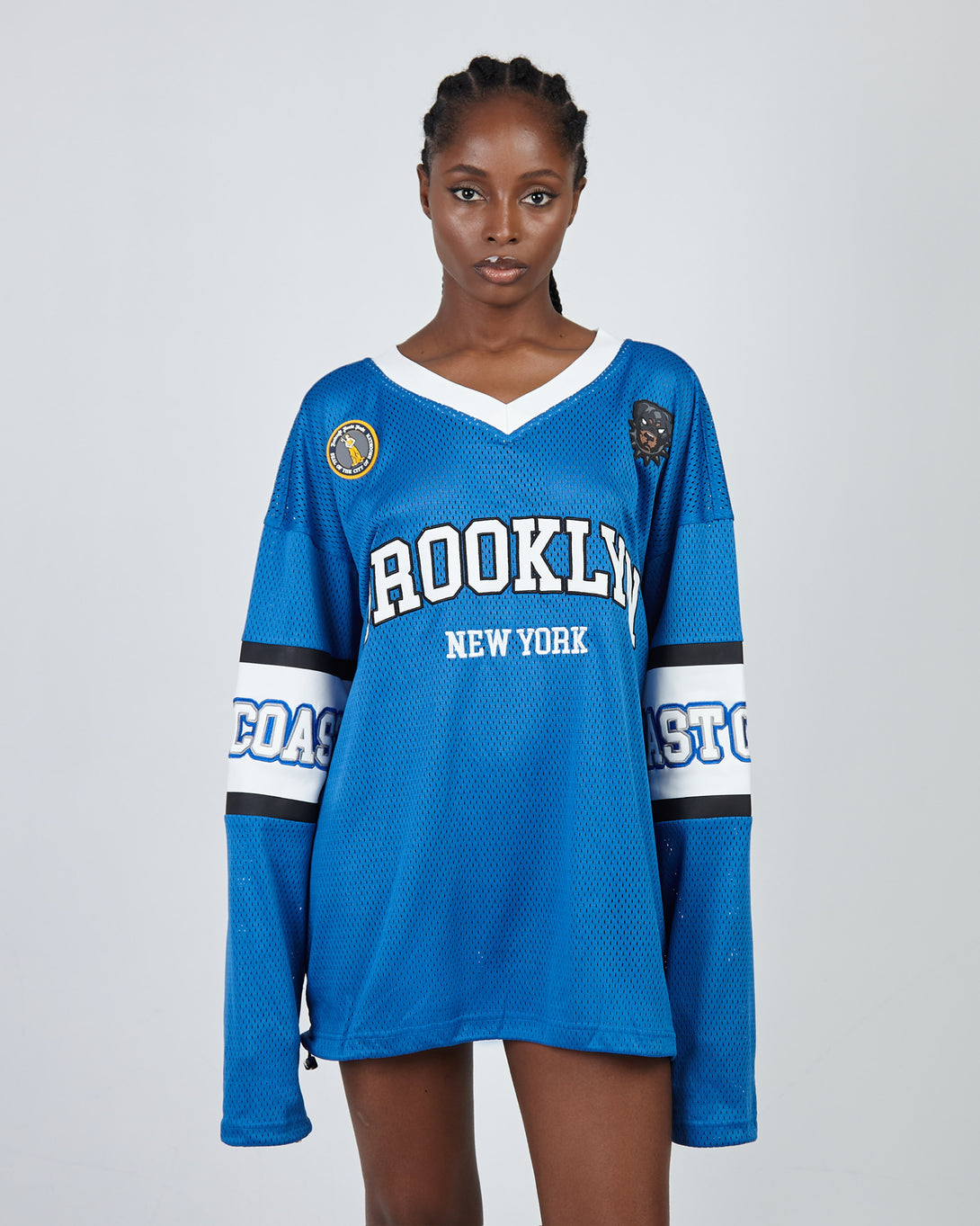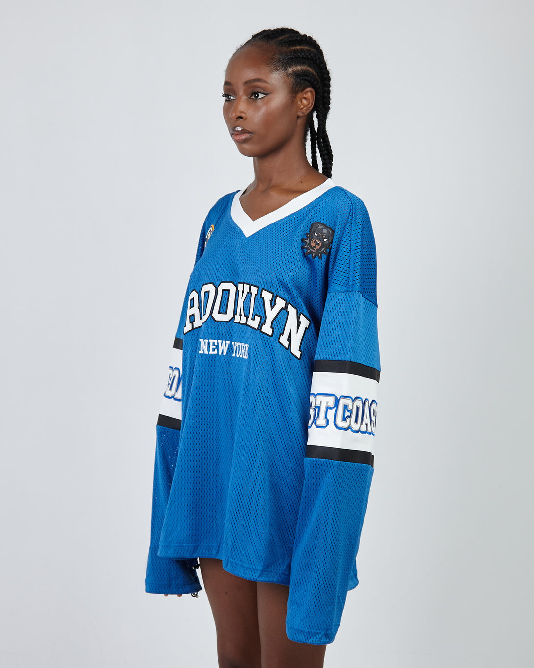 Experience style and comfort in this Brooklyn mesh long sleeve shirt. Its loose fit is perfect for sports, while the special knit fabric ensures breathability. Embroidered logos and rubber patches add a unique touch. Expertly designed for the ultimate sporting experience.