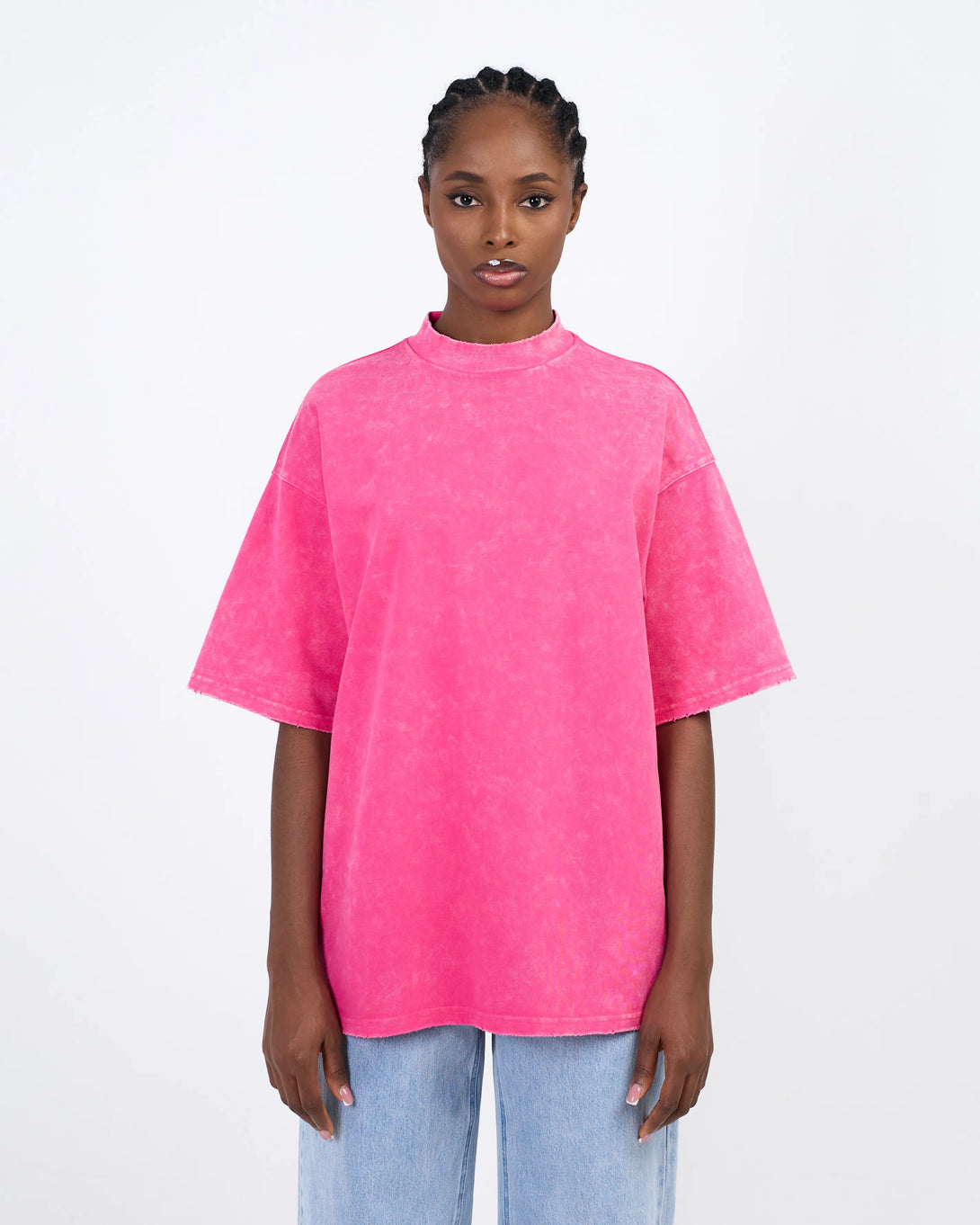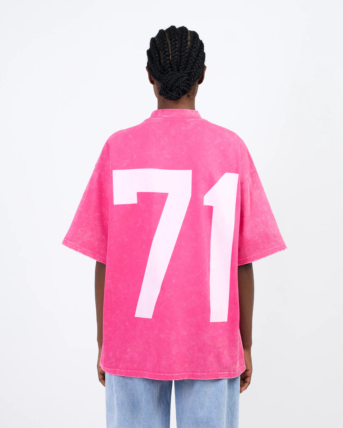This loose straight-cut t-shirt, made of heavy washed cotton, features a bold contrast print on the back and distressed edges on the sleeves and neckline. A versatile addition to your wardrobe for everyday wear.