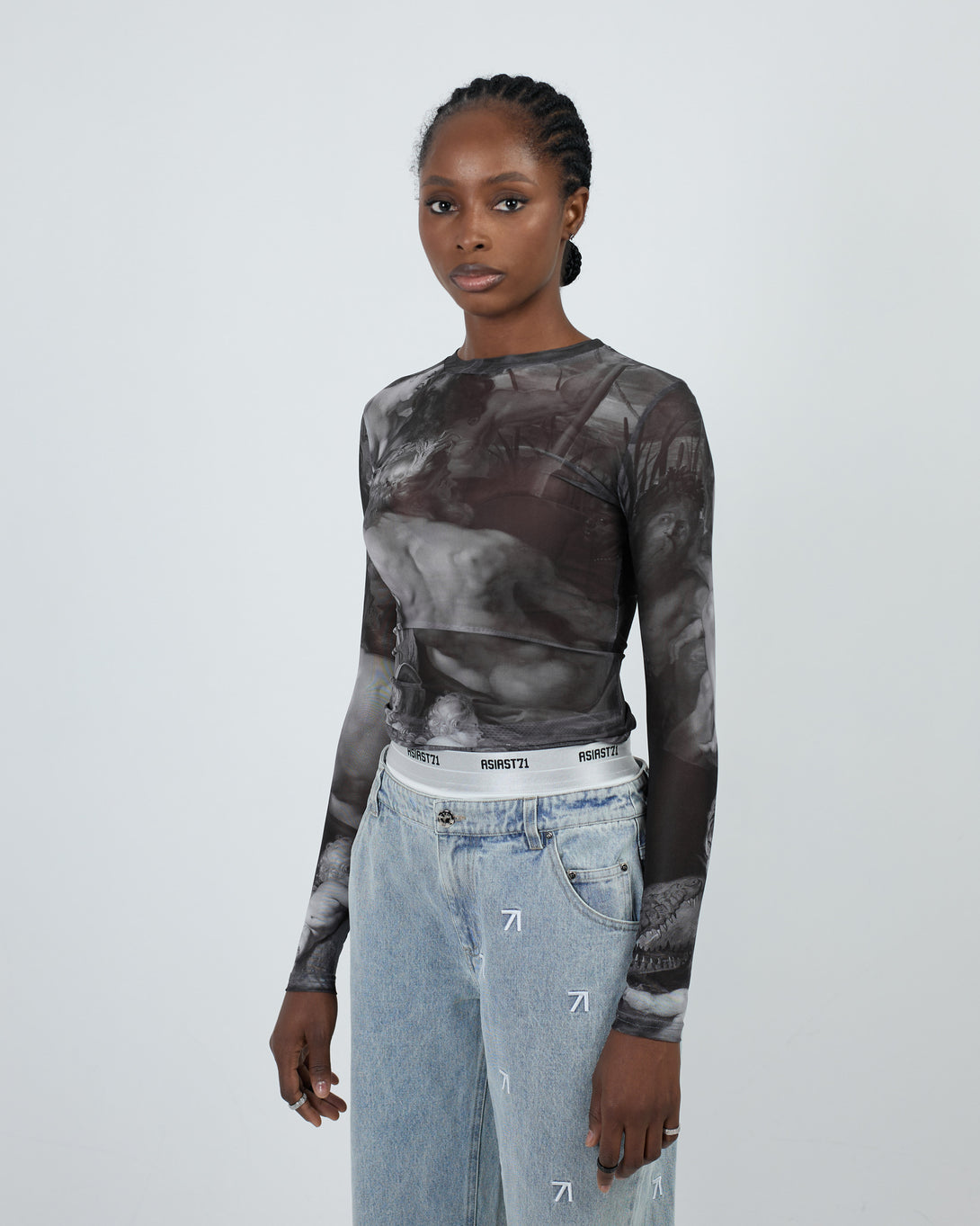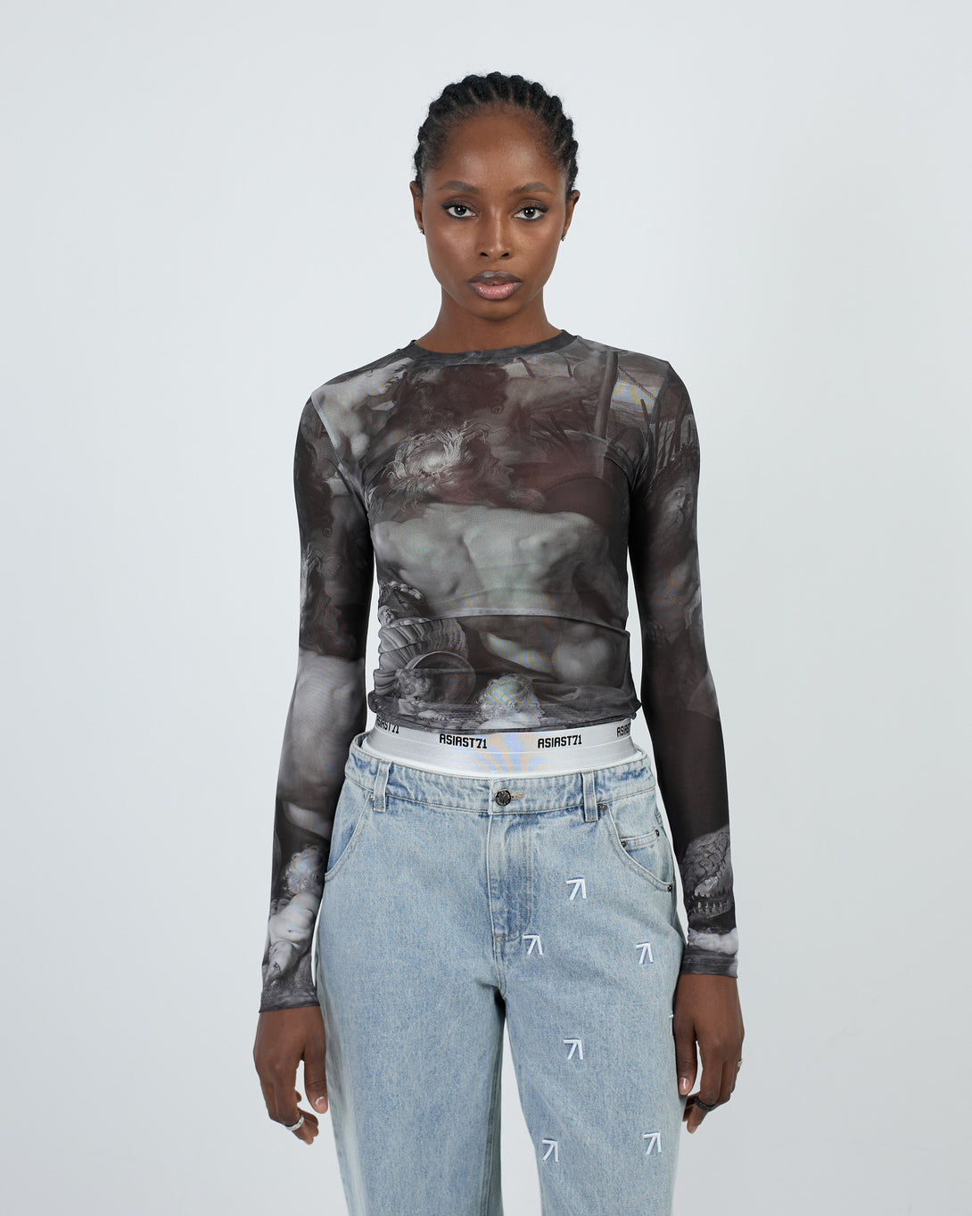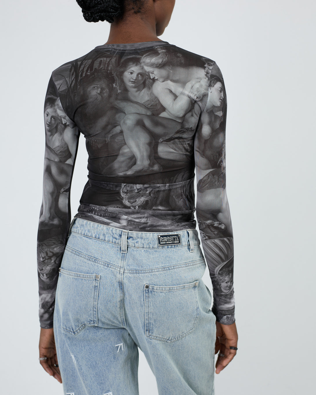 Elevate your style with our TOP ART UNION MESH GREY. This semi-sheer, fitted top features a soft and comfortable material that feels great against the skin. Pair with your favorite lingerie for a bold and chic look. A must-have accent piece to elevate any outfit.