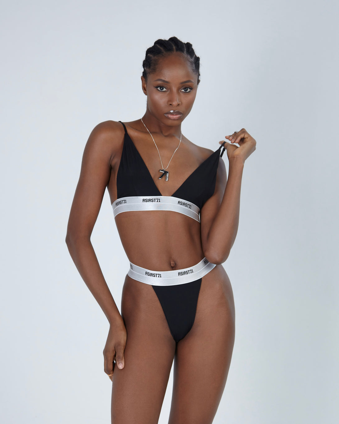 حمالة صدر علوية مضلعة بشعار مثلث أسود