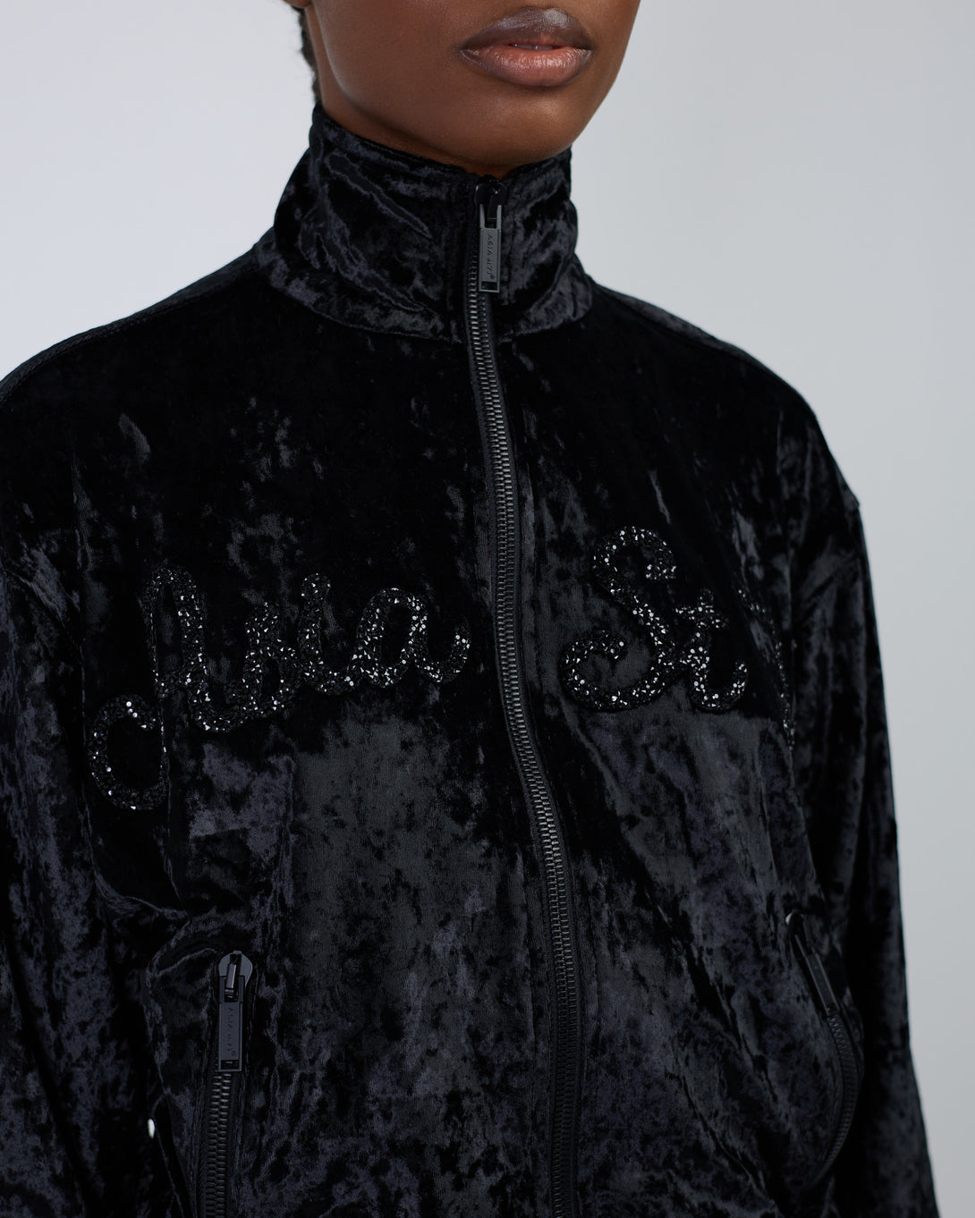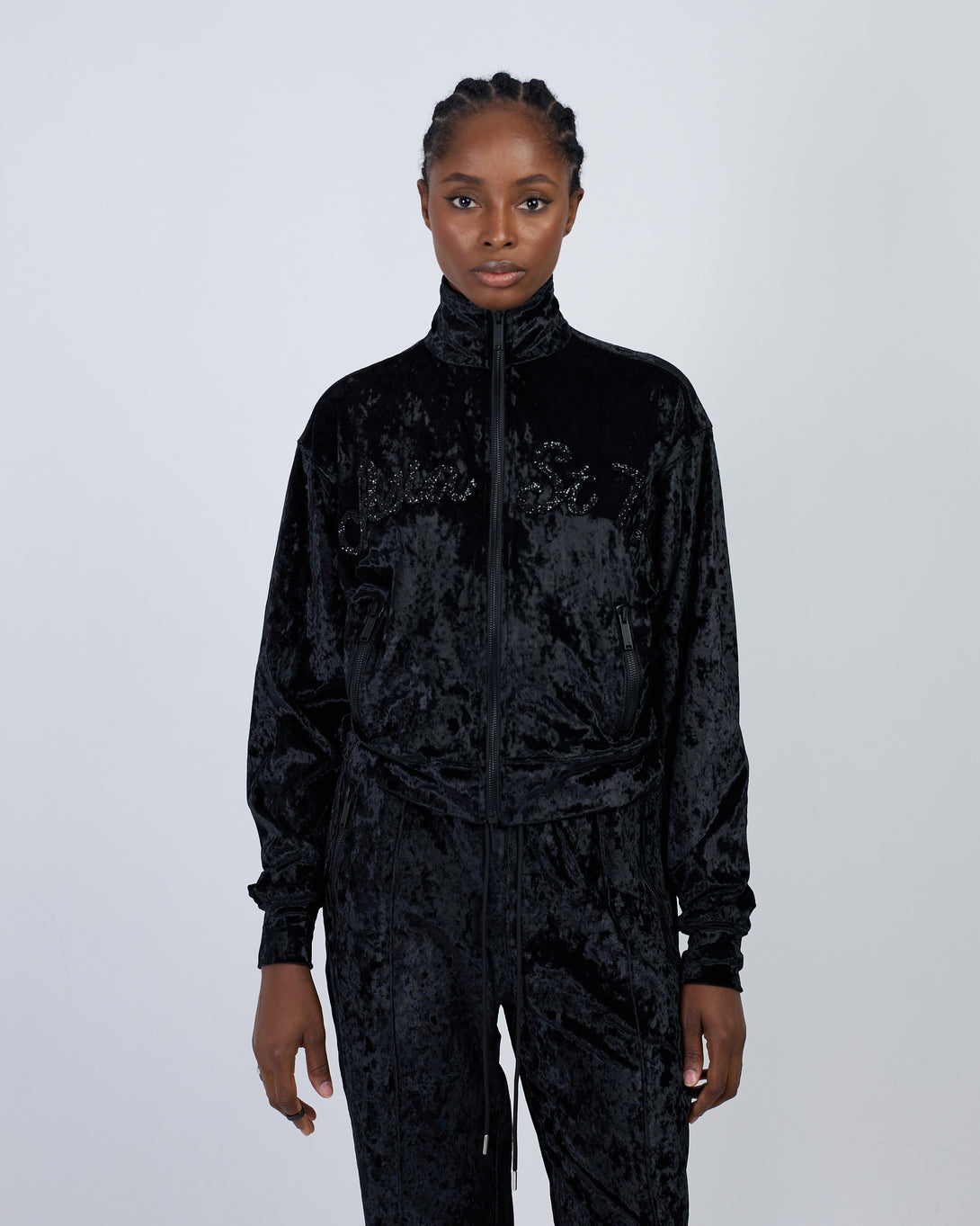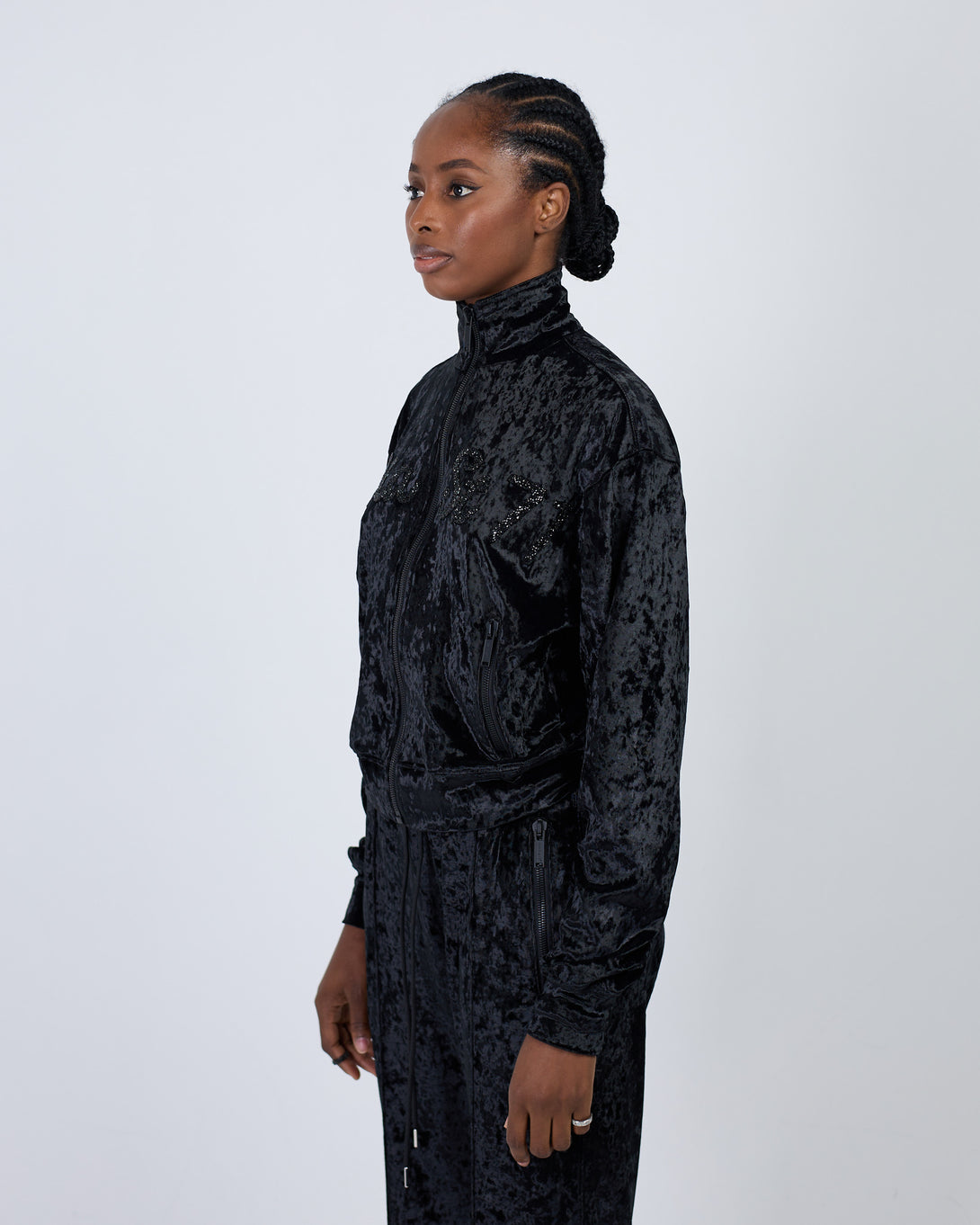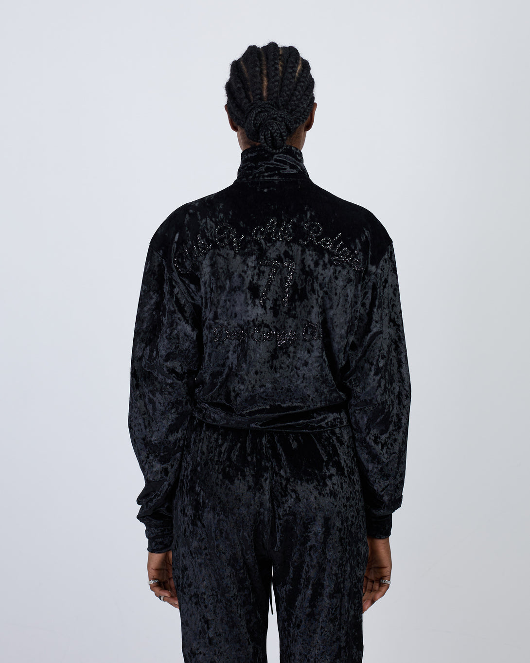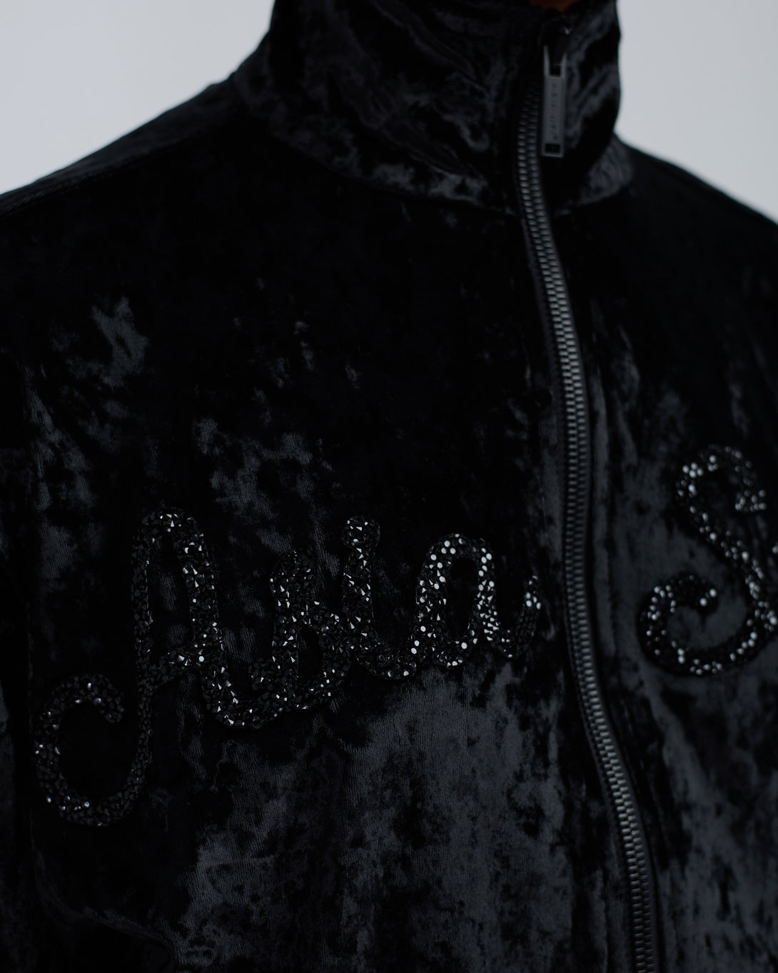Optez pour l'élégant costume noir en velours de SUIT CLUB ASIA ST 71. Orné de strass et d'un col montant, ce costume tendance est conçu pour un confort optimal. Les fermetures éclair en acier siglées et les fermetures éclair à logo ajoutent une touche de sophistication, tandis que la taille élastique avec cordon de serrage et les poches avant offrent confort et style.