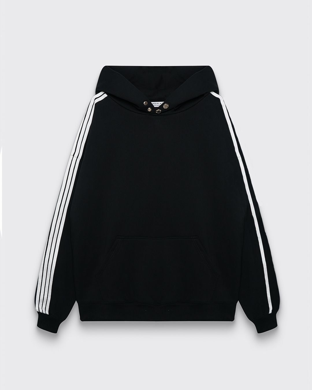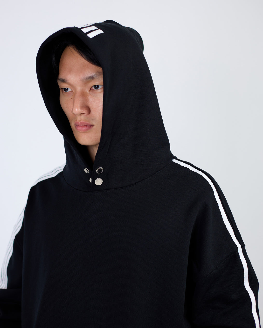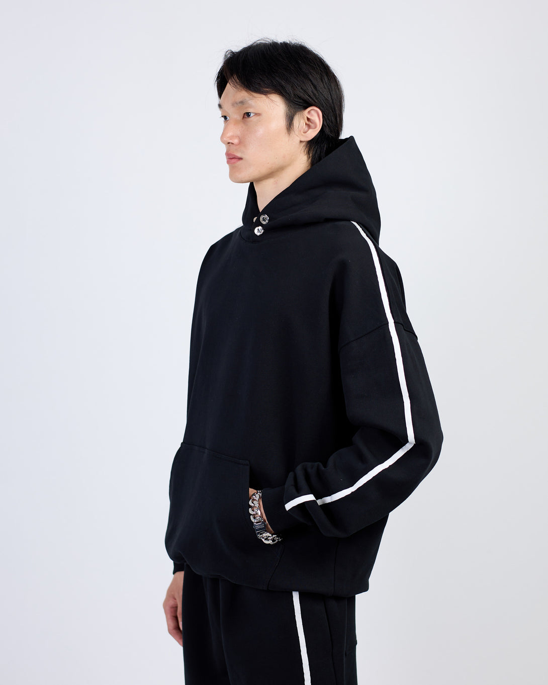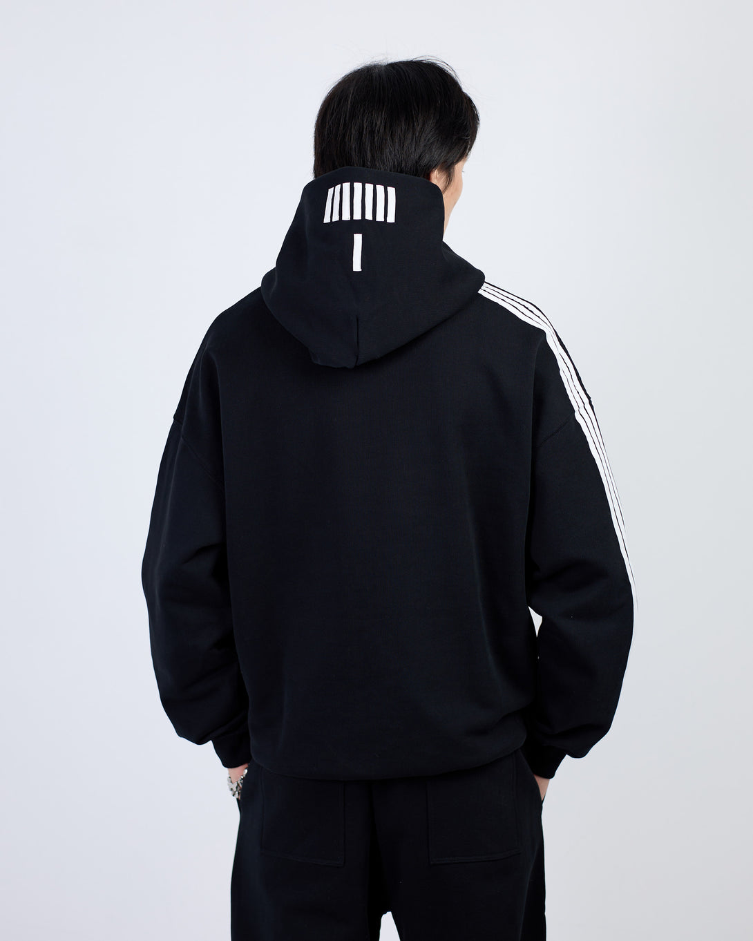 Expertly crafted from high-quality 580g cotton, the HOODIE STRIPES 580GR BLACK is a versatile and comfortable option for any casual day. With a loose fit and branded hood buttons, it can be paired with joggers or jeans for a stylish and statement look. Opt for this hoodie and elevate your wardrobe.