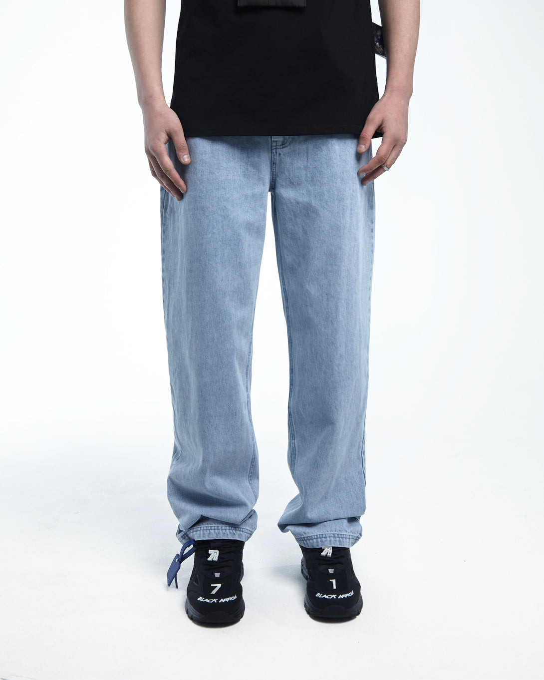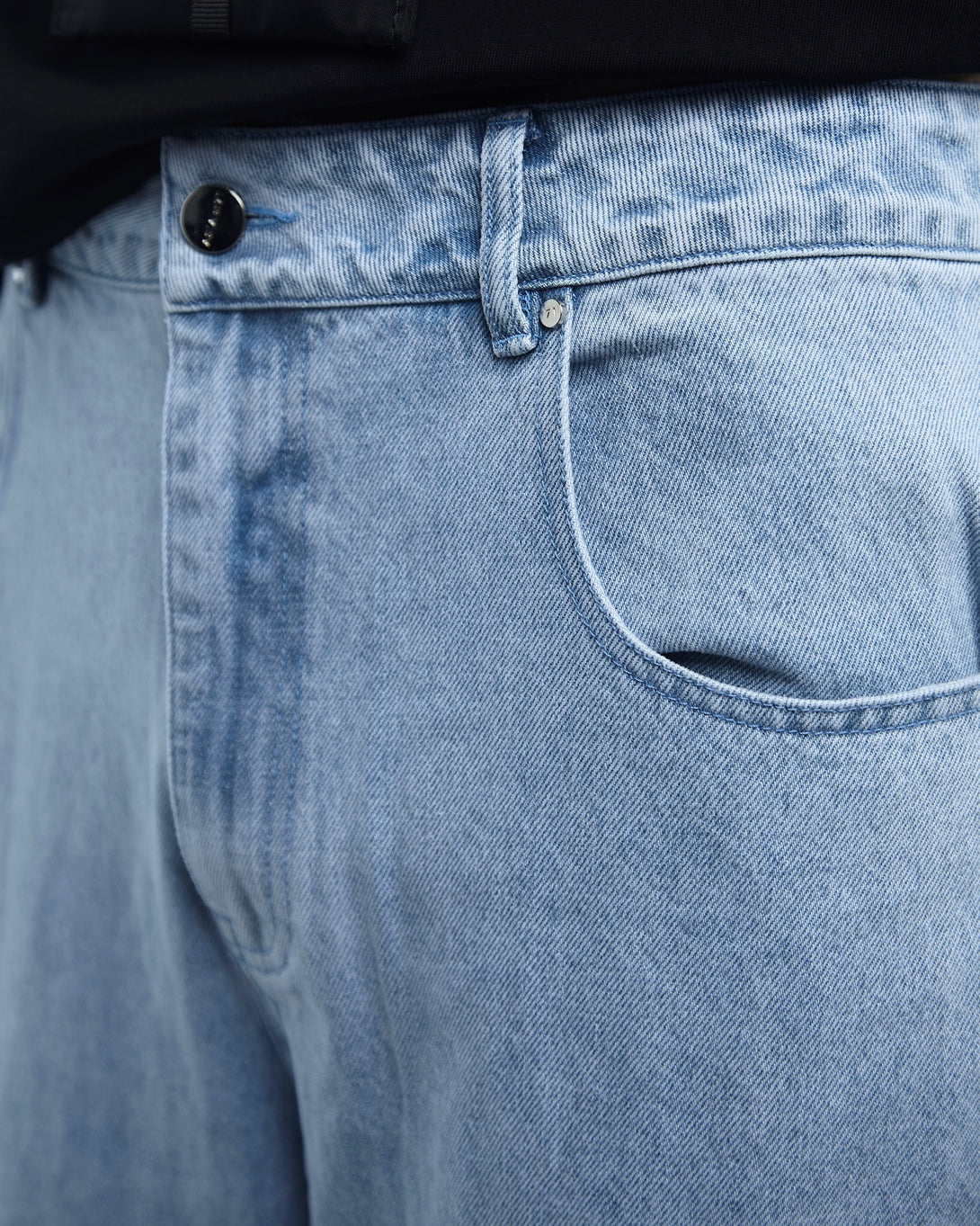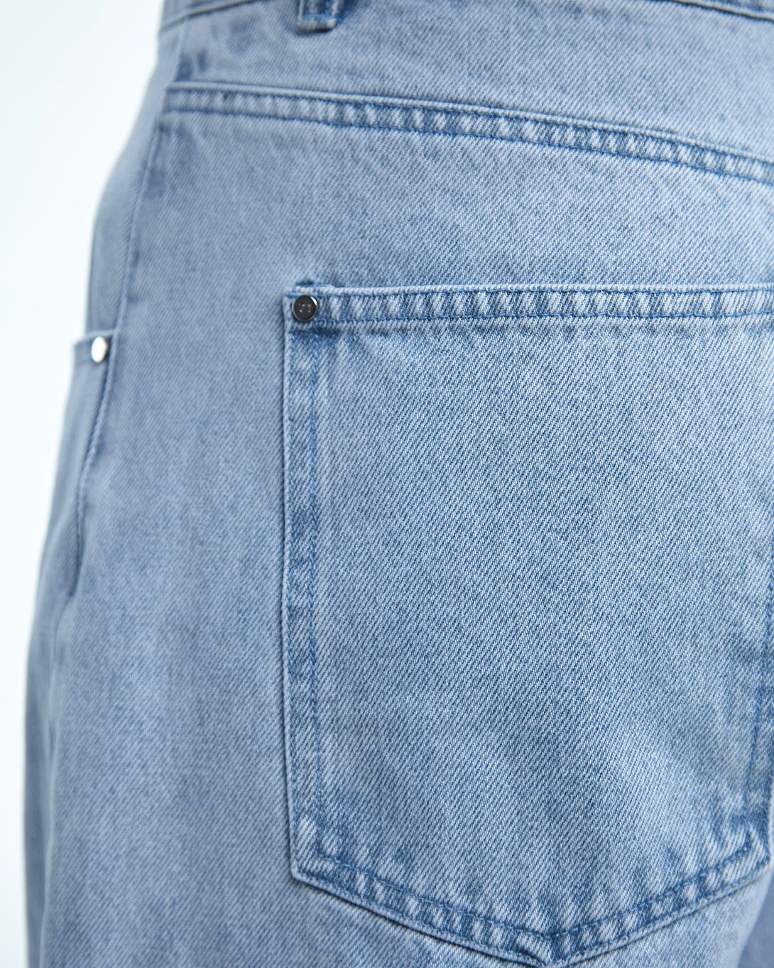 Upgrade your denim game with our light blue wide jeans. Made from thick, classic blue denim, these jeans offer both a perfect fit and timeless style. The minimalistic design features branded steel fittings, making them a versatile addition to any wardrobe. Get them a size larger for an oversized look or your regular size for a more fitted waist.