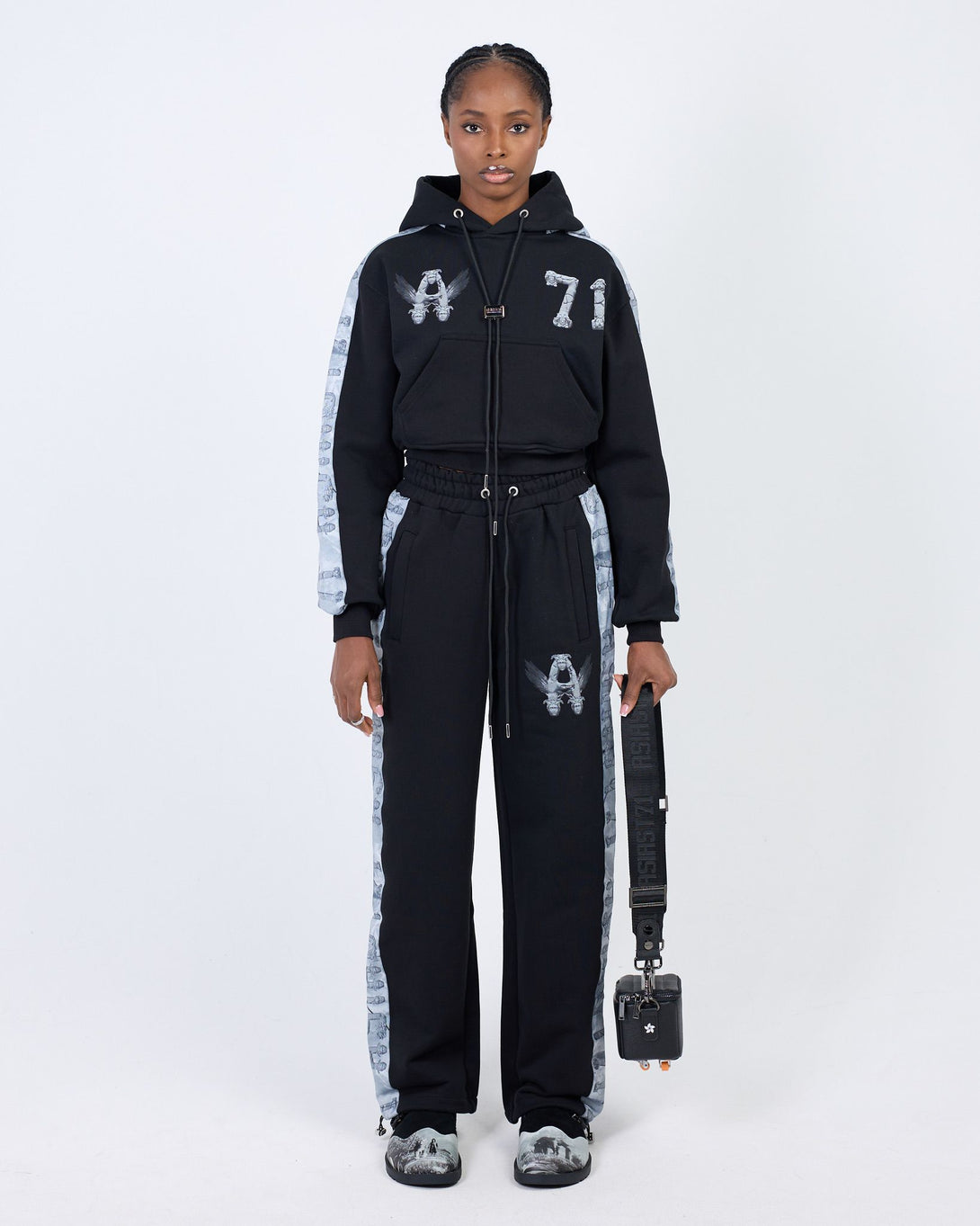 Expertly crafted from durable and soft cotton, these joggers feature a striking print and contrasting side stripes for a sporty touch. With a relaxed fit, practical pockets, and adjustable drawstring hem, they are a versatile addition to your wardrobe. Complete the look with our matching hoodies for the perfect outfit.