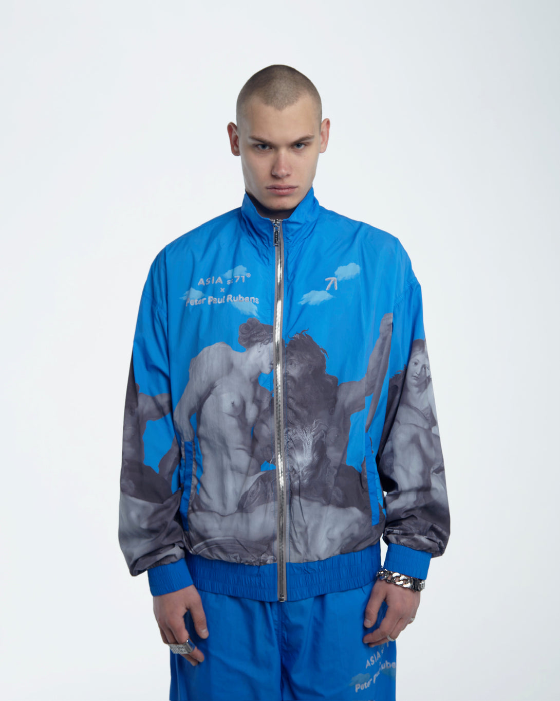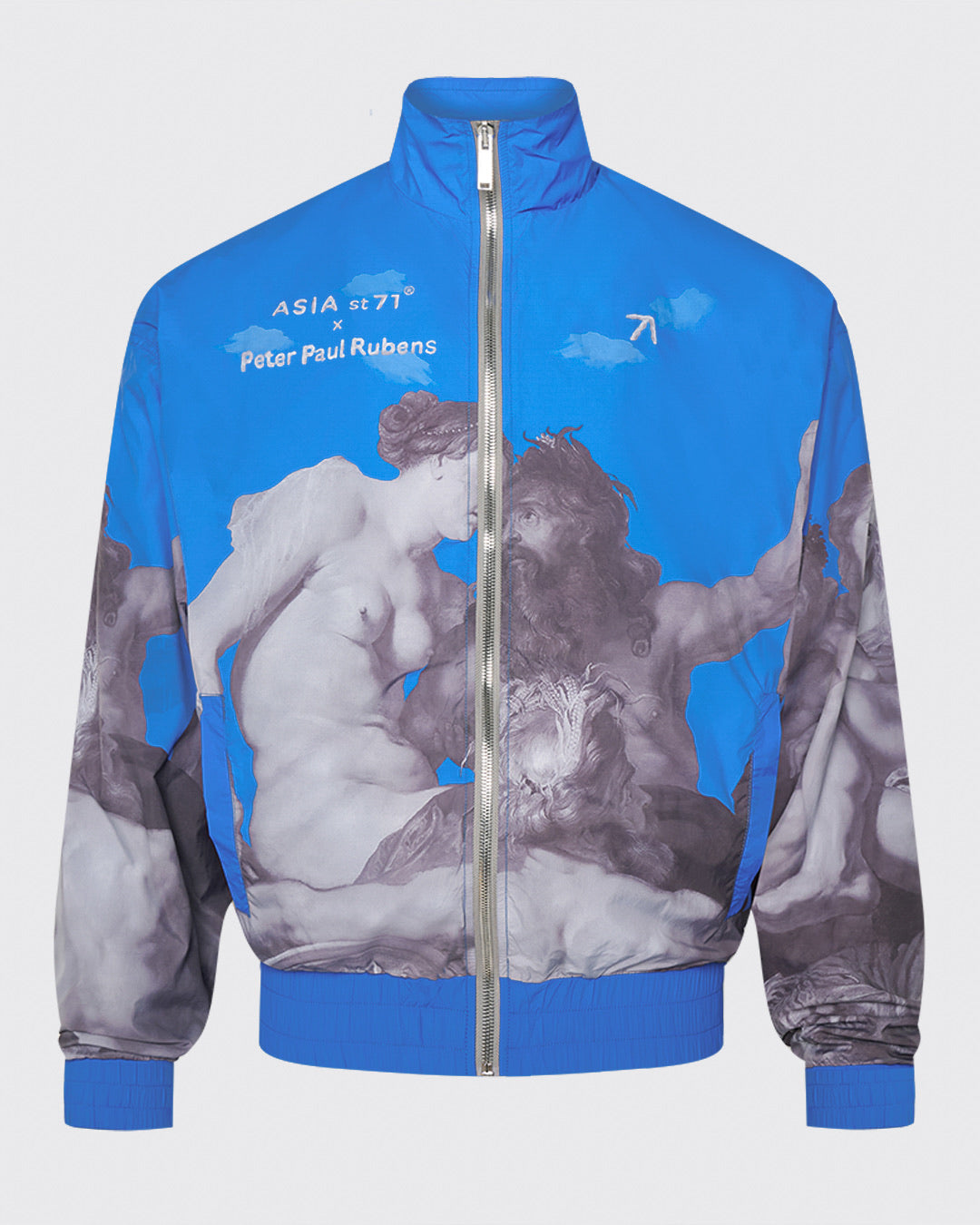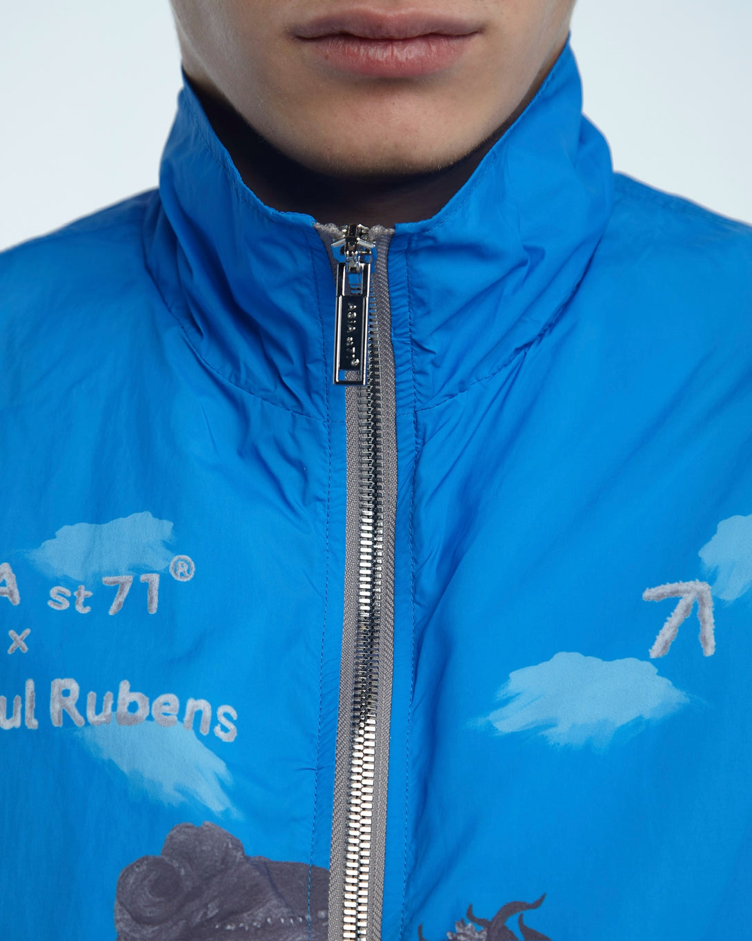 Introducing the OLYMPIC NYLON ART UNION PAUL RUBENS BLUE, featuring Olympian Paul Rubens from the Art Union collection. Made with practical nylon, it offers maximum comfort and freedom of movement. The stand-up collar and elastic bands provide wind protection, while slotted pockets ensure convenience. Upgrade your outerwear game today.