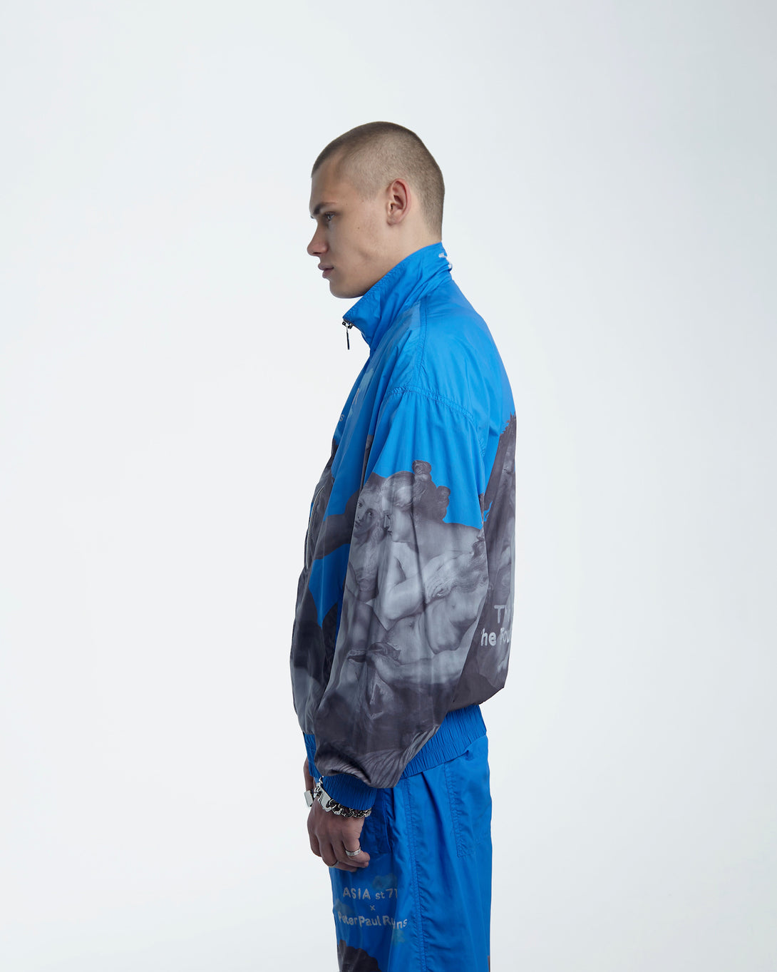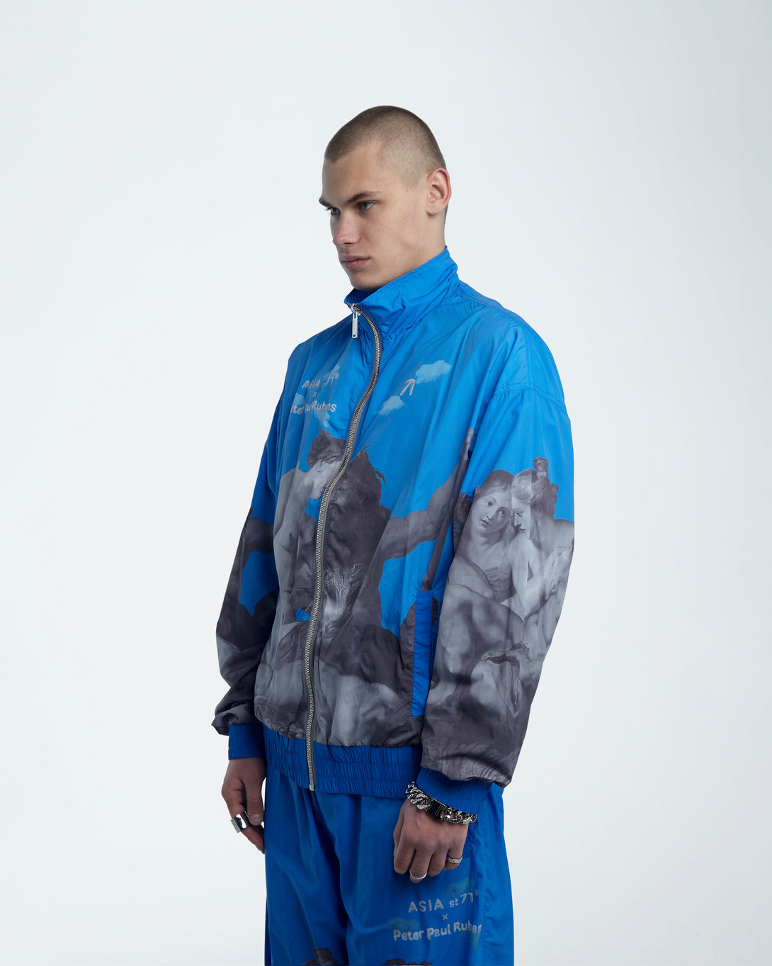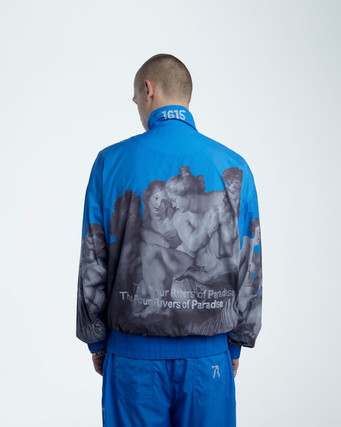 Introducing the OLYMPIC NYLON ART UNION PAUL RUBENS BLUE, featuring Olympian Paul Rubens from the Art Union collection. Made with practical nylon, it offers maximum comfort and freedom of movement. The stand-up collar and elastic bands provide wind protection, while slotted pockets ensure convenience. Upgrade your outerwear game today.