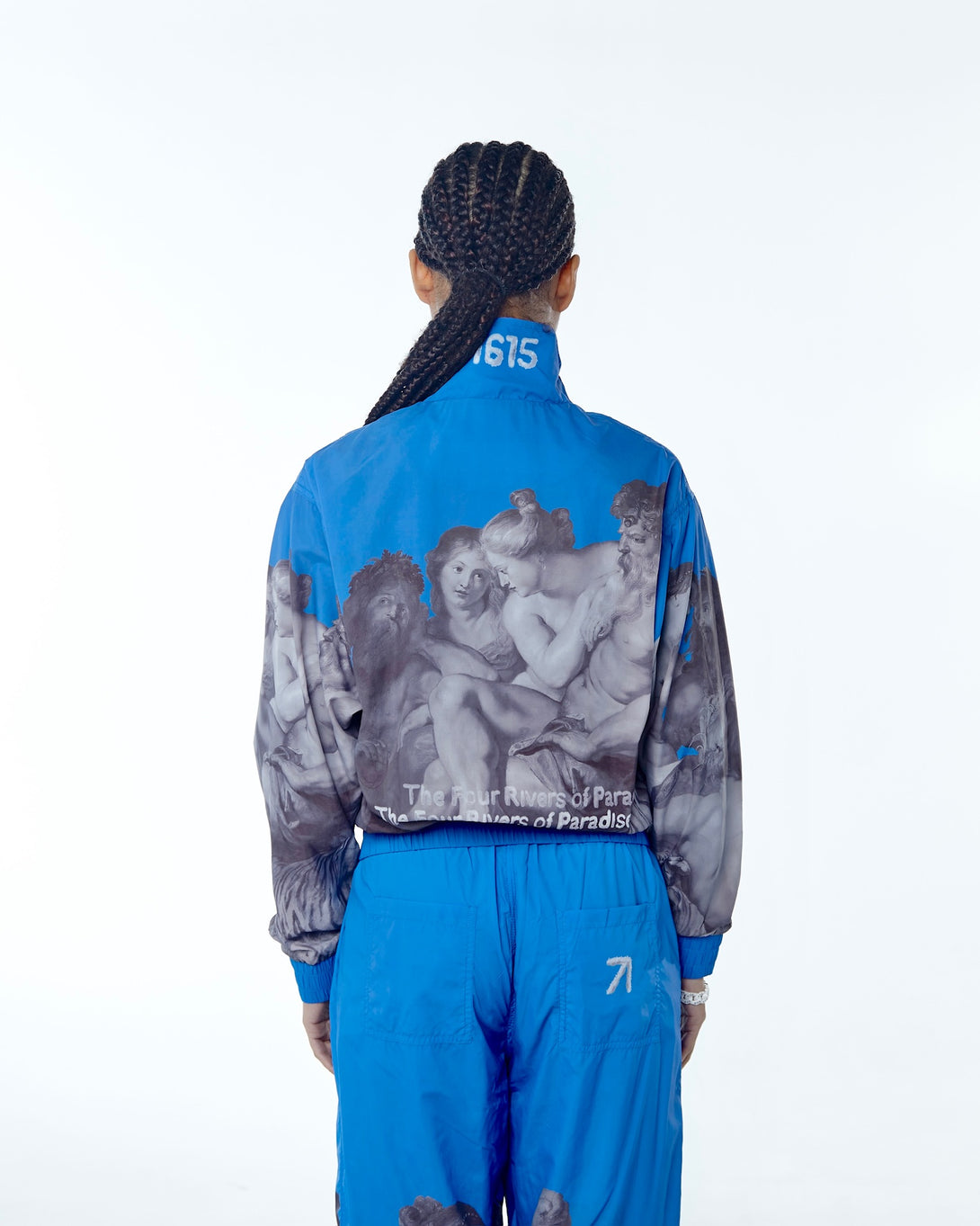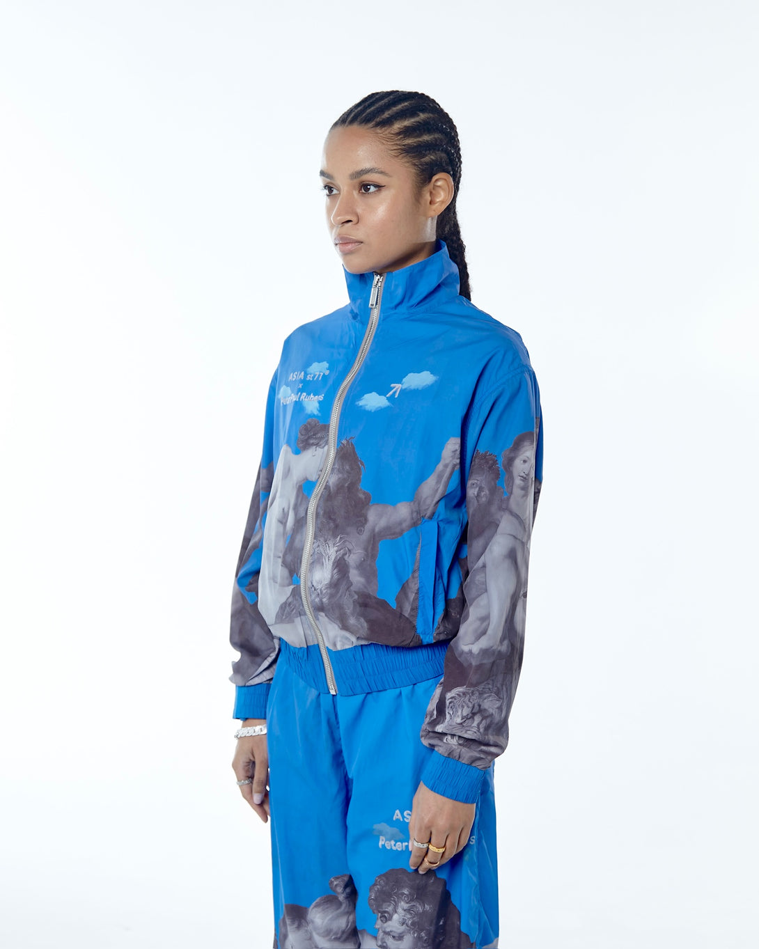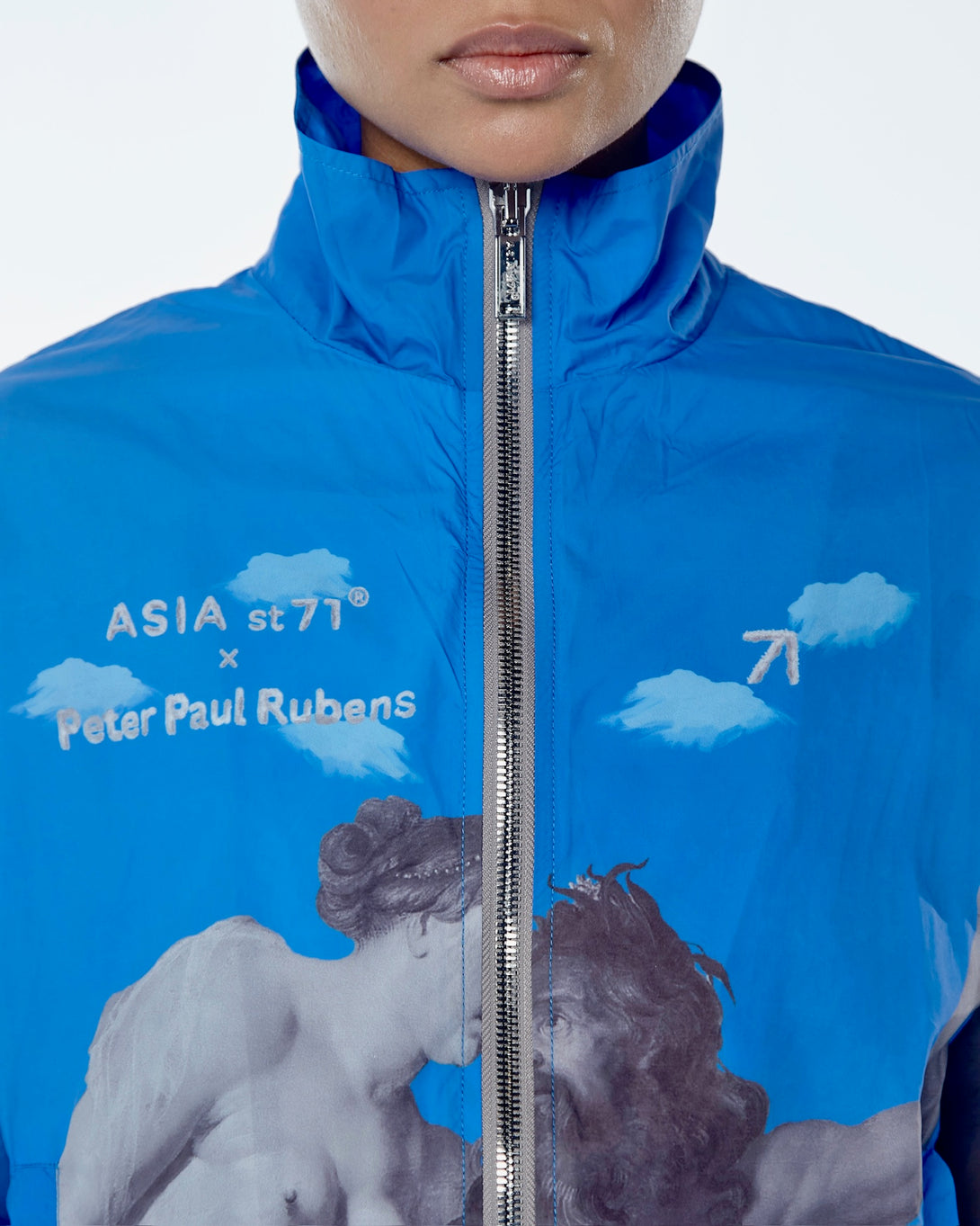 Introducing the OLYMPIC NYLON ART UNION PAUL RUBENS BLUE, featuring Olympian Paul Rubens from the Art Union collection. Made with practical nylon, it offers maximum comfort and freedom of movement. The stand-up collar and elastic bands provide wind protection, while slotted pockets ensure convenience. Upgrade your outerwear game today.