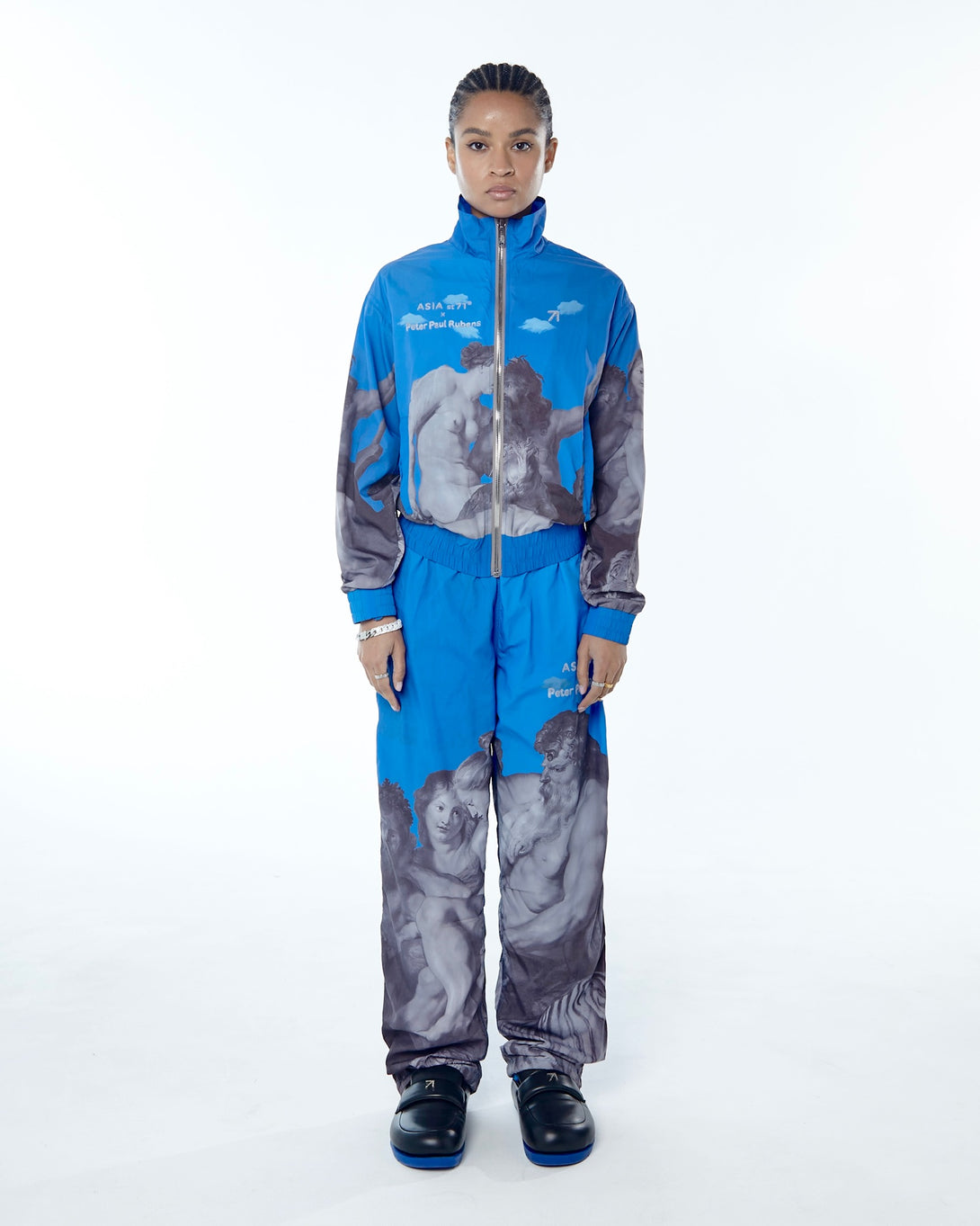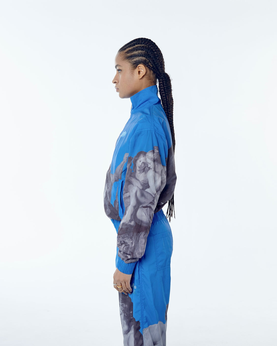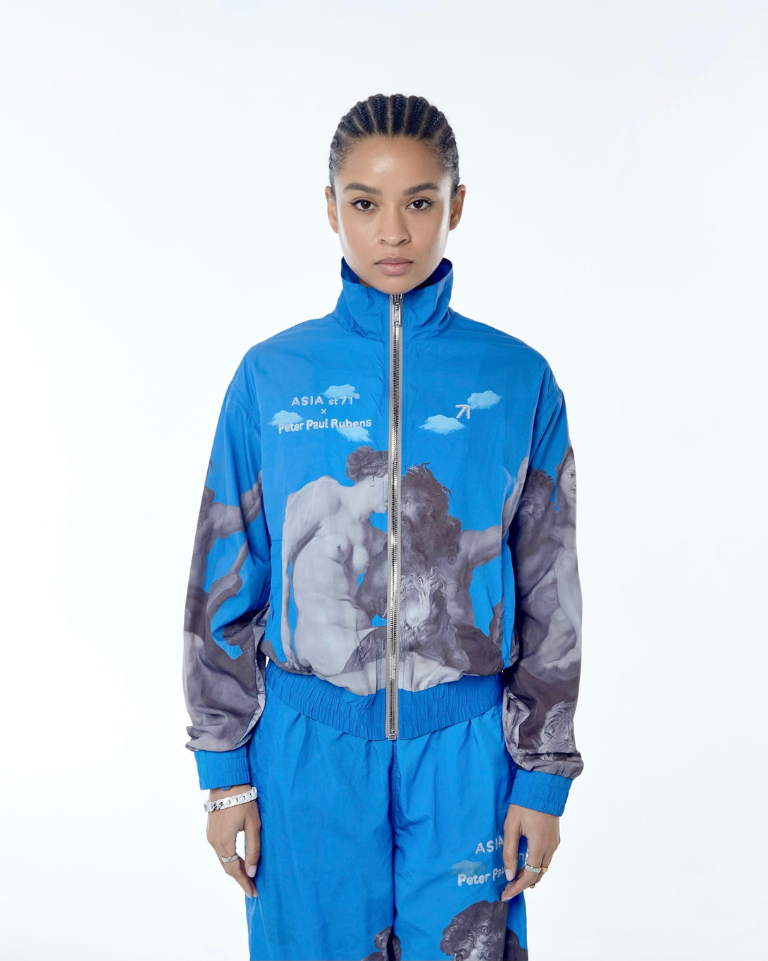 Introducing the OLYMPIC NYLON ART UNION PAUL RUBENS BLUE, featuring Olympian Paul Rubens from the Art Union collection. Made with practical nylon, it offers maximum comfort and freedom of movement. The stand-up collar and elastic bands provide wind protection, while slotted pockets ensure convenience. Upgrade your outerwear game today.