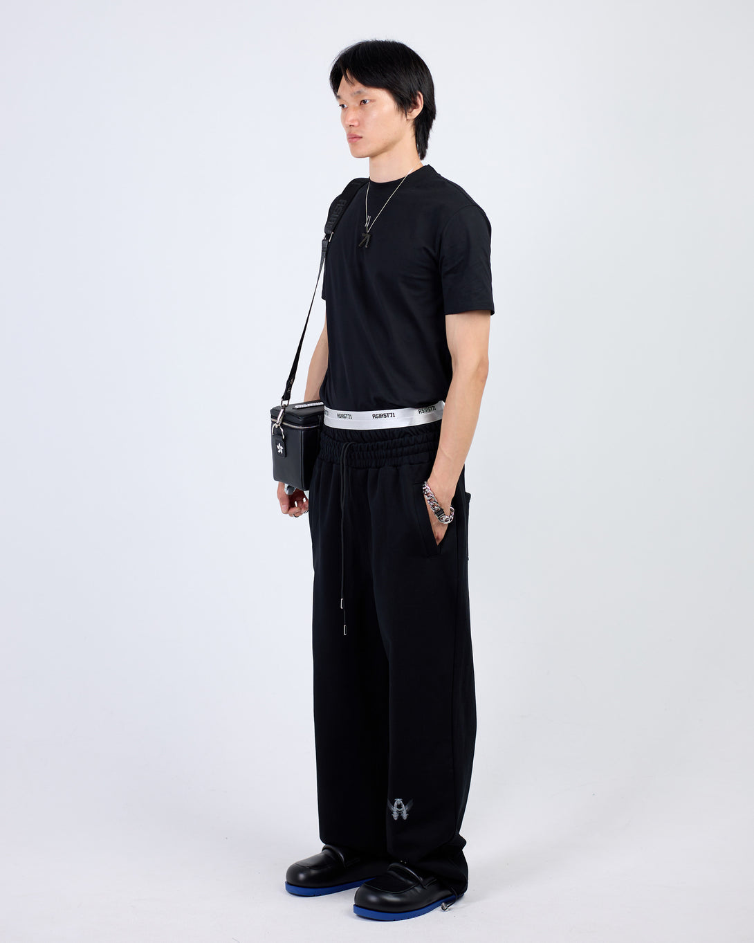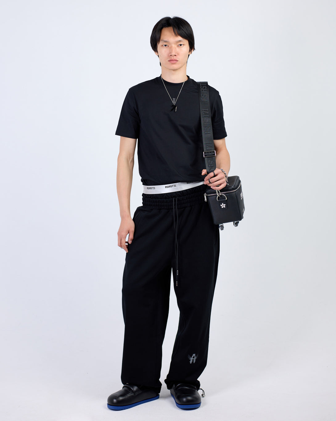 Introducing our PANTS DOUBLE WAIST 580GR BLACK - comfortable, wide joggers made from durable cotton in black and dusty blue. Featuring a double contrast waistband with logo pattern, comfortable elastic waistband with adjustable ankle drawstring. With 2 front slant pockets and 2 back patch pockets, these versatile pants are a staple for any wardrobe.