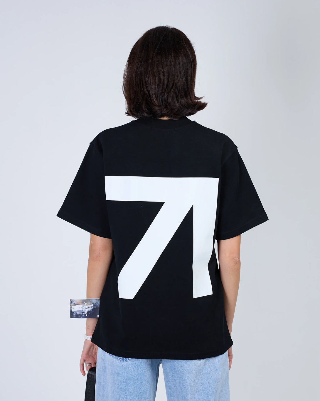 Expertly crafted in soft velvet-like cotton, this T-Shirt Base 71 in peach and black is the must-have essential for any wardrobe. Featuring a bold branded back print and a textured front design, this straight-fit shirt exudes effortless style. The go-to choice for any season, it's finished with a branded label for added appeal.