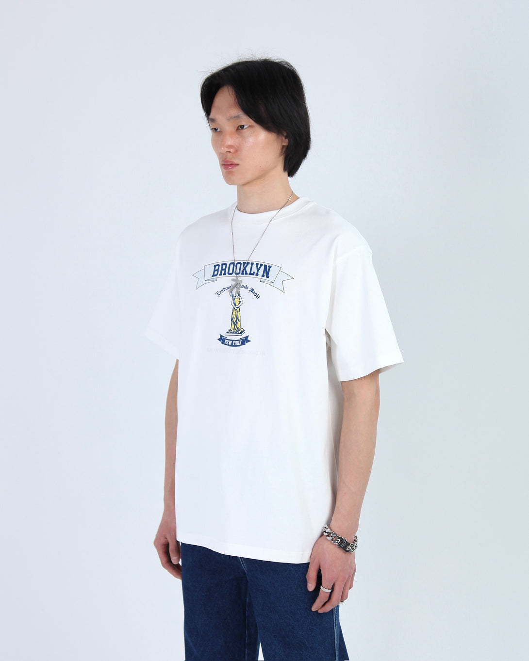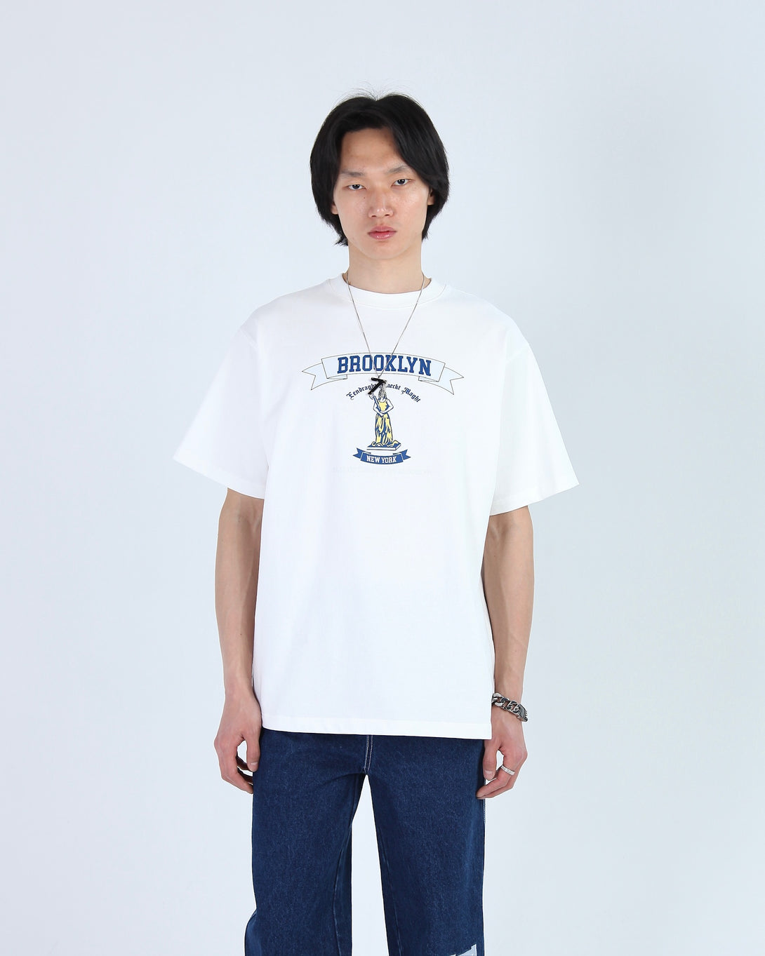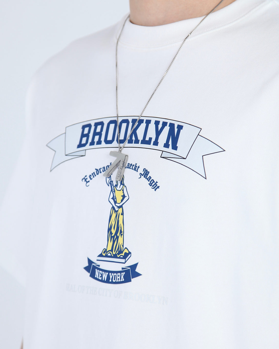 Upgrade your t-shirt game with the Brooklyn Blazon White! Designed for both men and women, this shirt features a specialized print for a unique look. Made from durable, 320 GR cotton, it offers a loose fit for a comfortable and stylish wear. Add it to your collection now.