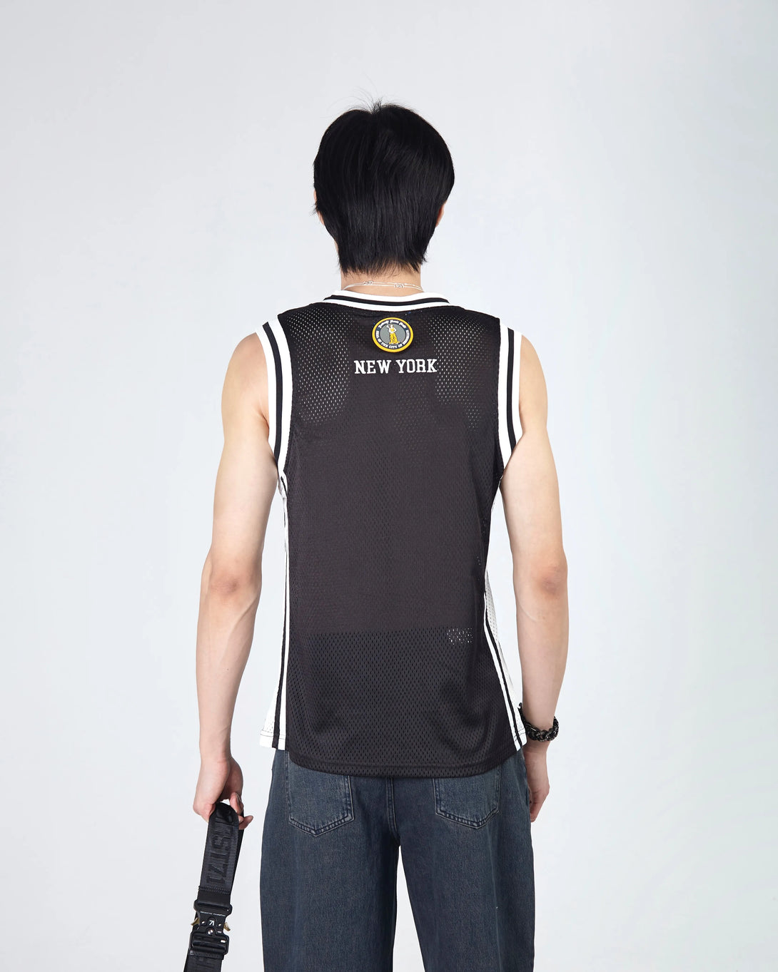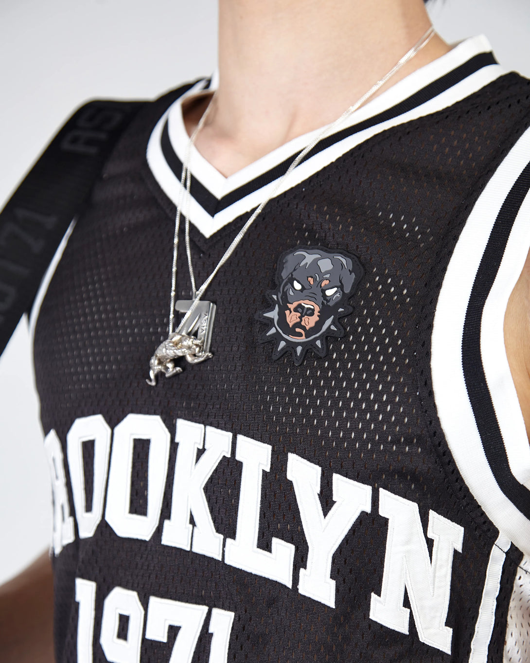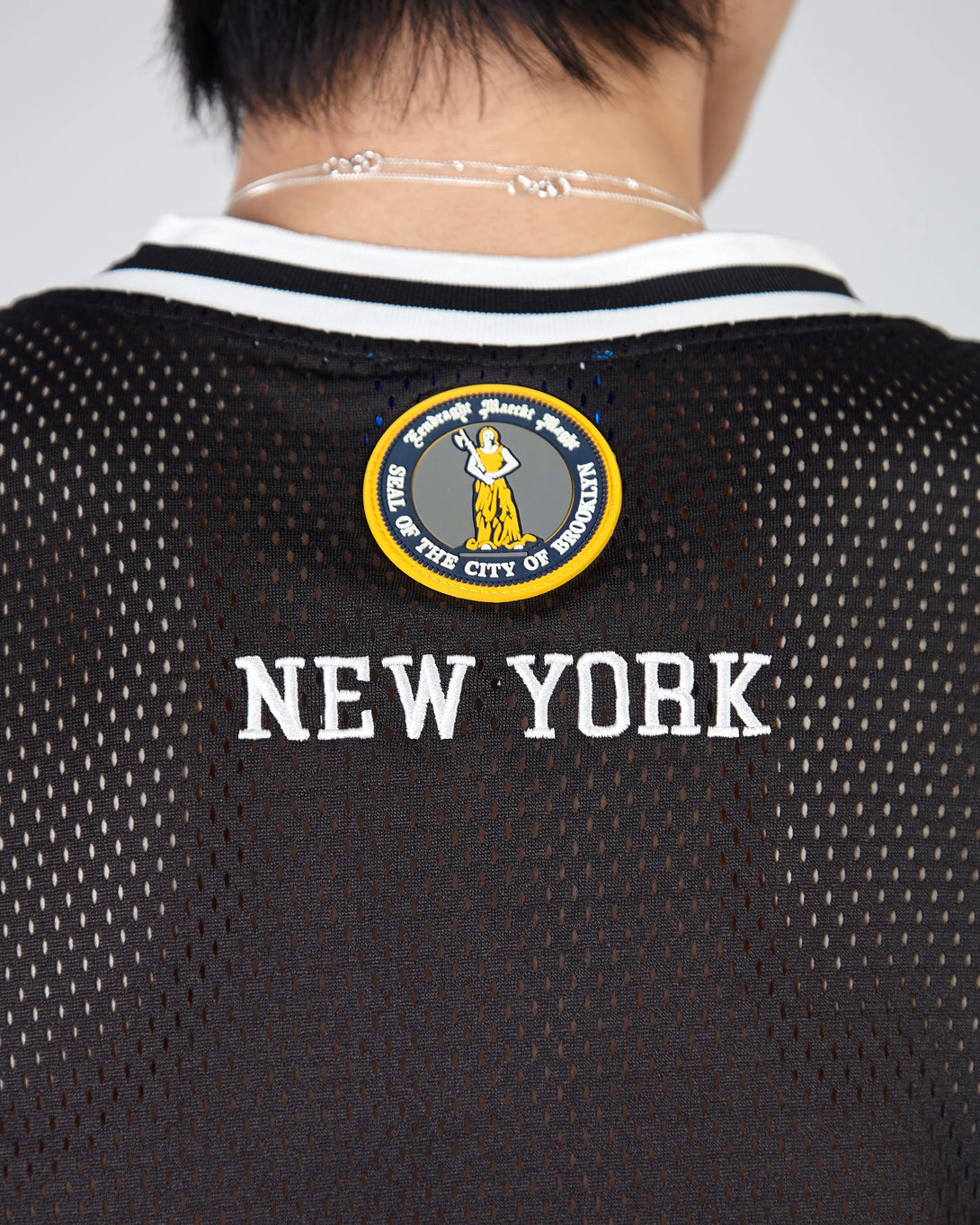 Expertly crafted from a special porous knit fabric, the TOP MESH JERSEY BLACK t-shirt from the Brooklyn collection offers a loose straight cut, perfect for sports. Embroidered logos and unique patches add a touch of style to the functional design. Stay cool and comfortable while looking your best.
