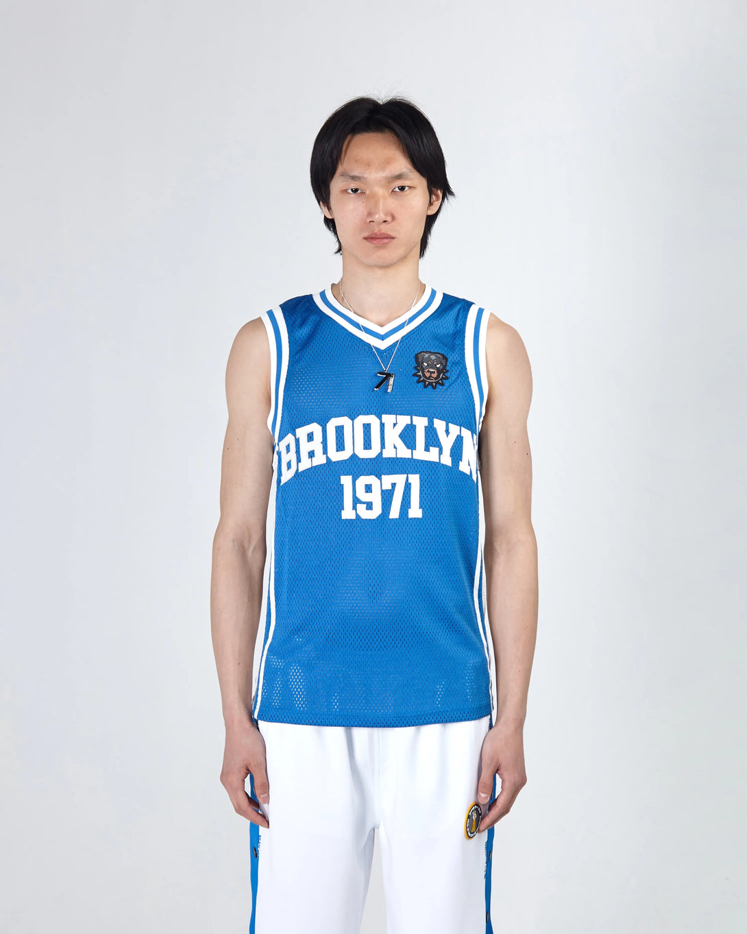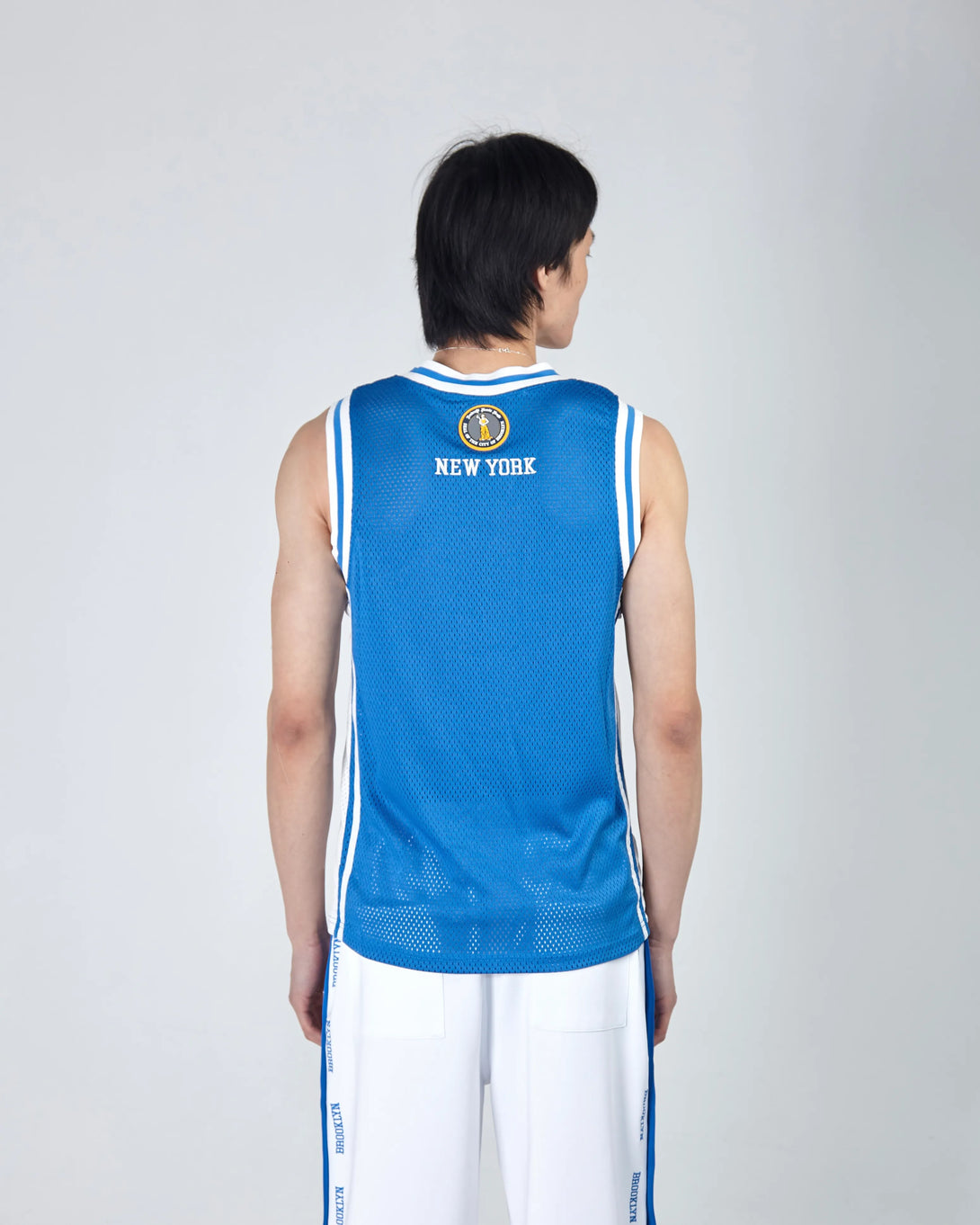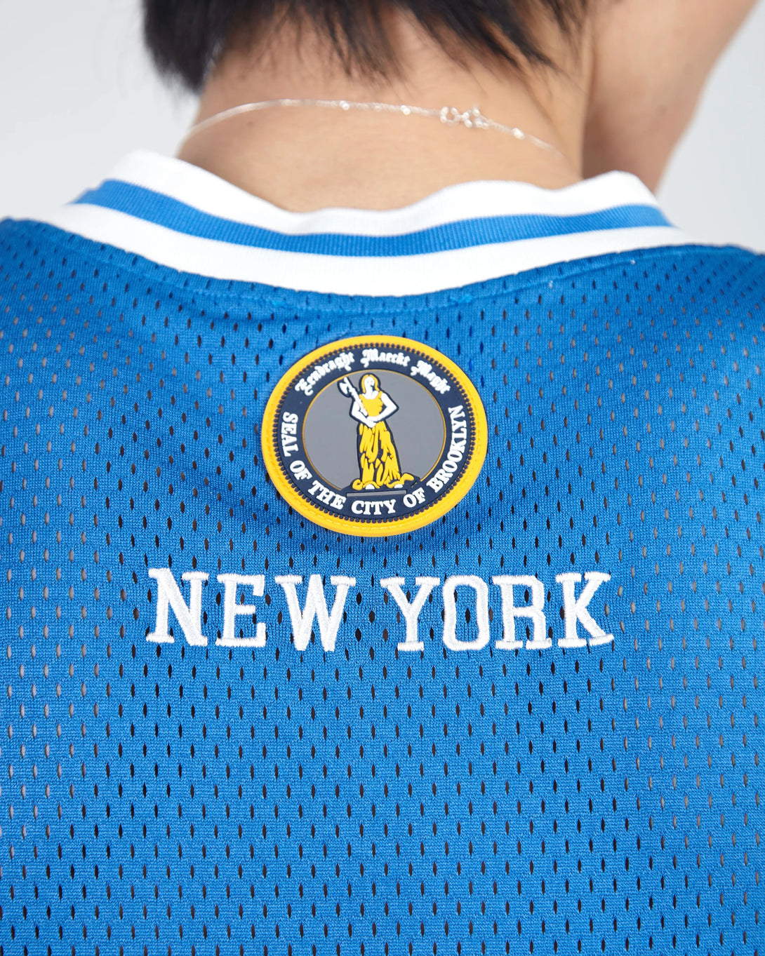 Expertly crafted from a special porous knit fabric, the TOP MESH JERSEY BLUE t-shirt from the Brooklyn collection offers a loose straight cut, perfect for sports. Embroidered logos and unique patches add a touch of style to the functional design. Stay cool and comfortable while looking your best.