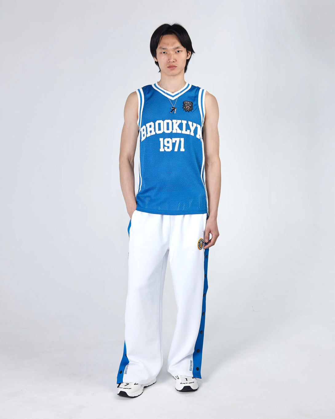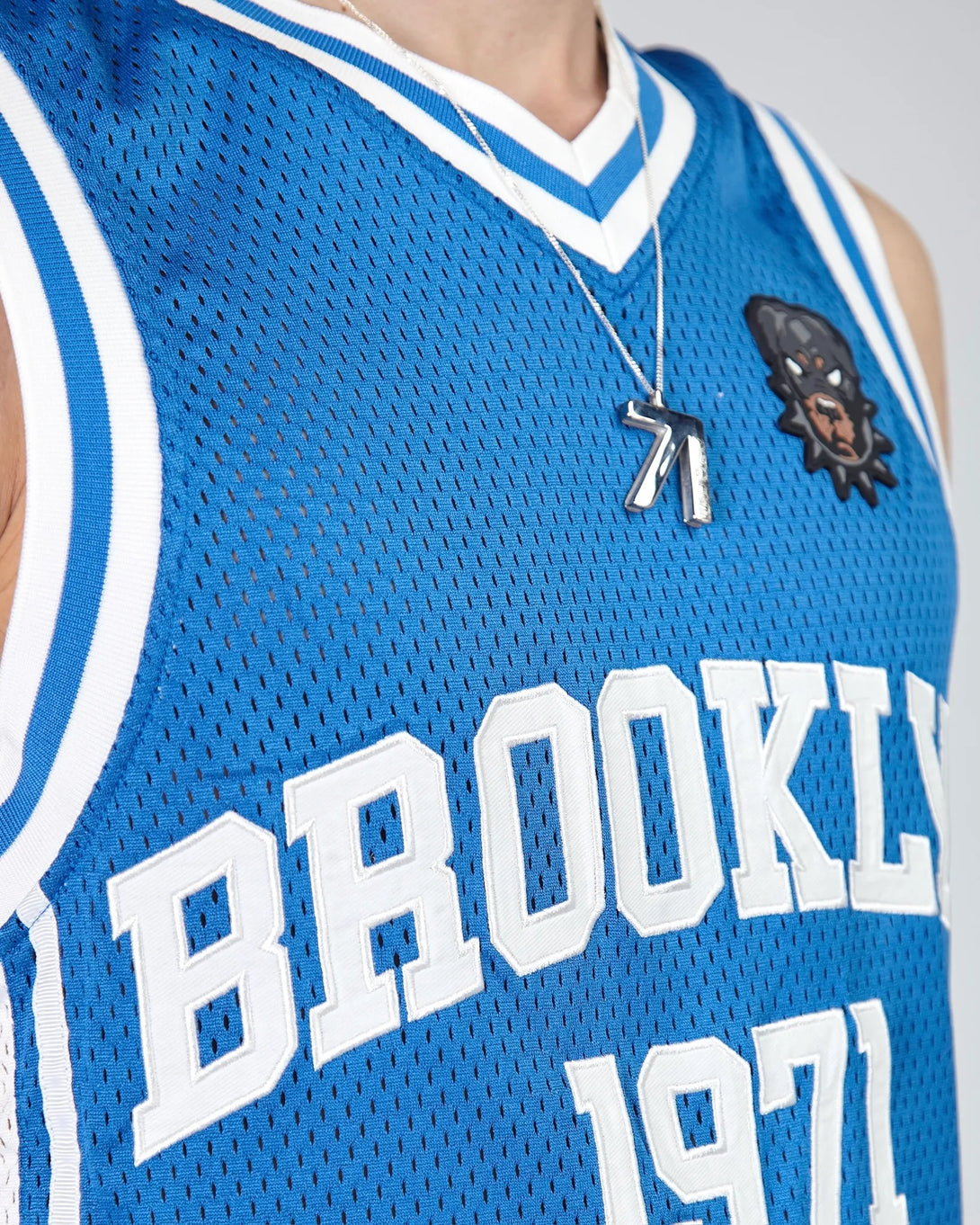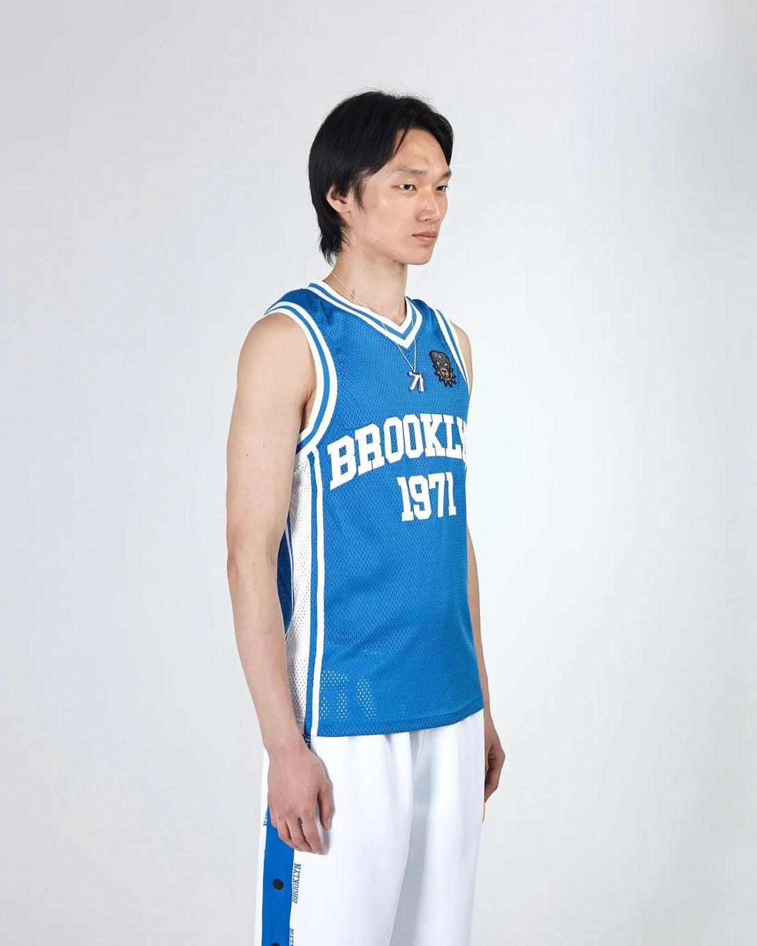 Expertly crafted from a special porous knit fabric, the TOP MESH JERSEY BLUE t-shirt from the Brooklyn collection offers a loose straight cut, perfect for sports. Embroidered logos and unique patches add a touch of style to the functional design. Stay cool and comfortable while looking your best.