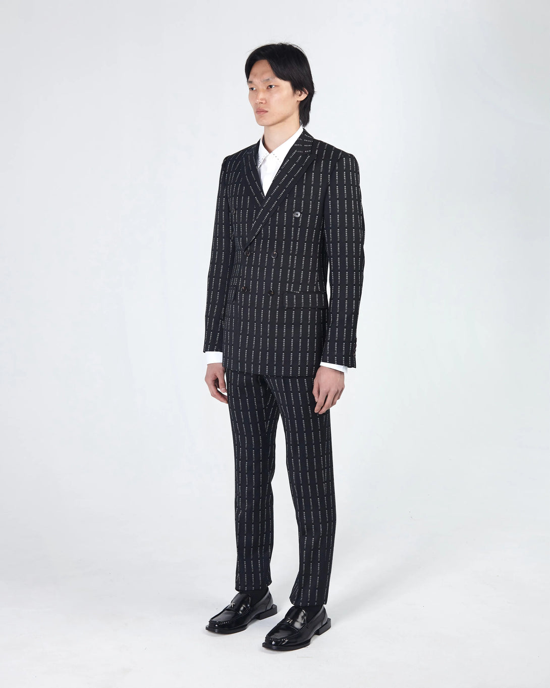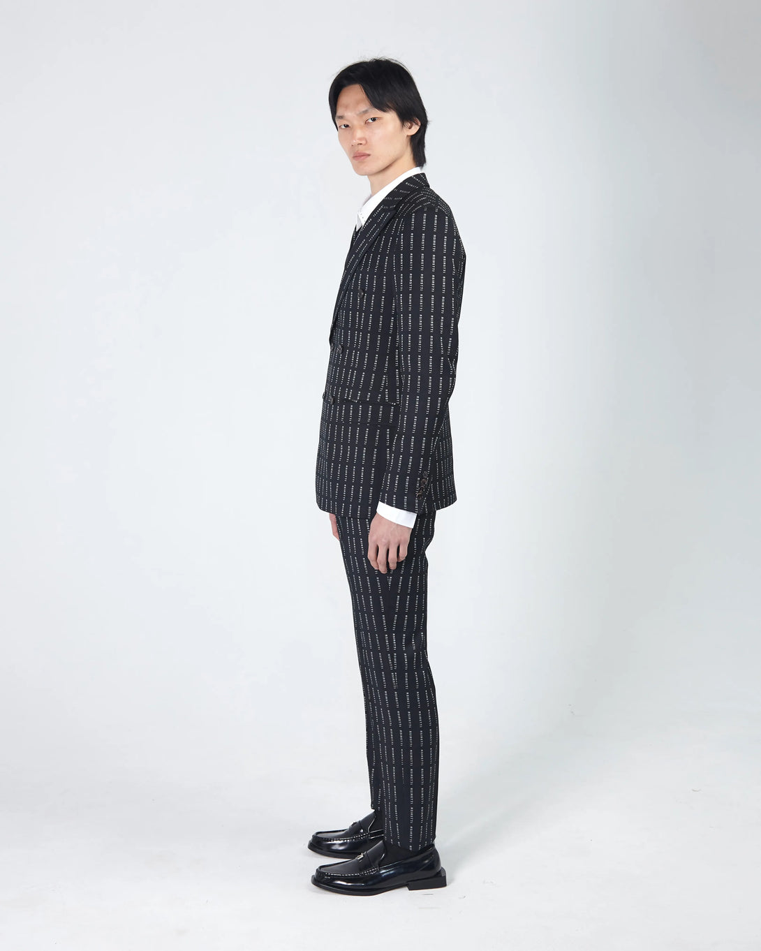 These black Classic Line trousers are crafted from a half wool fabric, featuring a straight cut and medium fit for ultimate comfort. The logo pattern, inspired by Asia, adds a unique touch to the design. Complete your look by pairing with a matching jacket or a monochrome top for a versatile style.